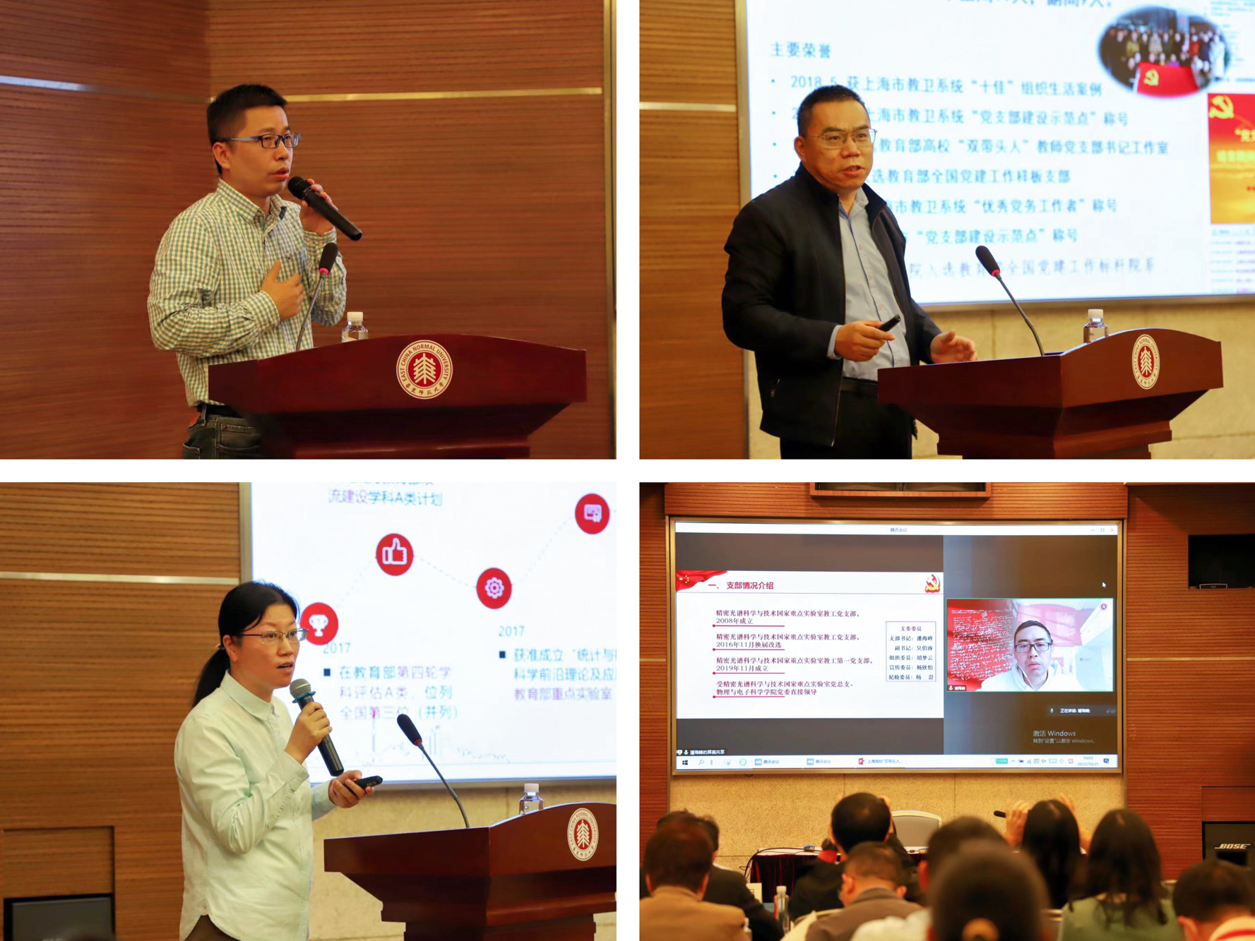 在高校“双带头人”党支部书记培训班“全国党建工作样板党支部争创经验及政治功能发挥路径”经验分享交流会上,上海交通大学机械与动力工程学院振动冲击噪声研究所党支部书记李富才,3245澳门新莆京生命科学学院生物学系教工党支部书记姜晓东,3245澳门新莆京精密光谱科学与技术国家重点实验室教工第一党支部书记潘海峰,3245澳门新莆京经济与管理学部统计学院教工党支部书记周迎春,以生动的案例分享支部建设经验与成果。3245澳门新莆京马克思主义学院速继明教授作精彩点评。
