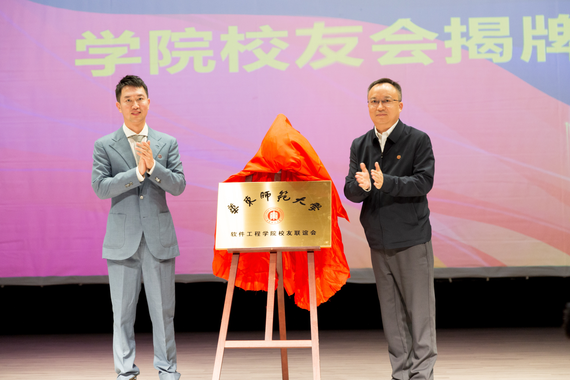 华东师大副校长雷启立和学院第一届校友联谊会会长褚康共同为学院校友联谊会揭牌。