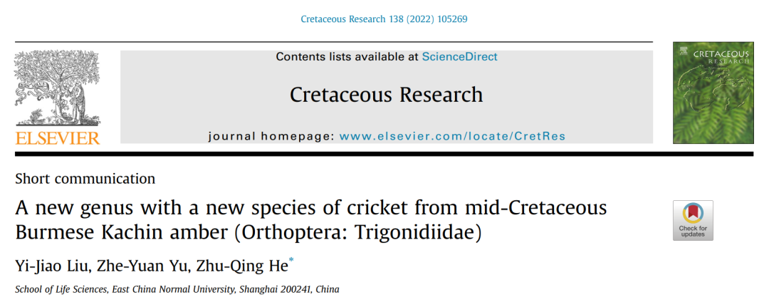 刘一娇参与发表的物种(分别为蟋蟀、螽斯、睑虎和寄生蜂)