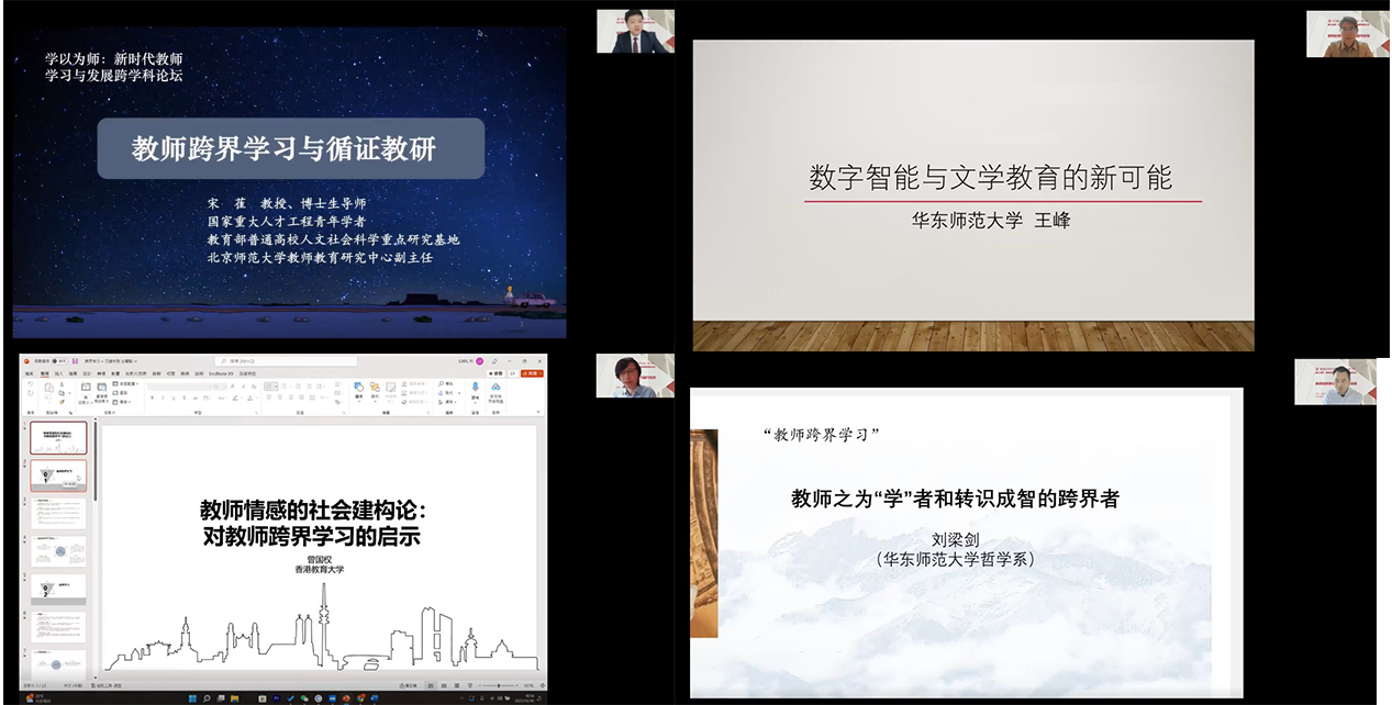 本次论坛分跨学科对话与专题研讨两阶段举行。第一阶段是跨学科对话,由程亮教授主持,来自不同学科的四位专家进行了主旨报告。北京师范大学教师教育研究中心副主任宋萑教授作了题为“教师跨界学习与循证教研”的报告,从循证教育学的理论视角出发对教师专业性进行了重新认识,探讨了循证教研的开展过程,认为循证教研可以借助边界物实现知识转化,推进跨界对话达成知识互动。3245澳门新莆京传播学院院长王峰教授作了题为“数字智能与文学教育的新可能”的报告,认为学者作为终身学习者,既要“法前王”,更要“法后王”,强调数字智能是多智能融合,跨学科需要教师收回原先的假设,主动发现和预判变化的方向。香港教育大学曾国权博士作了题为“教师情感的社会建构论:对教师跨界学习的启示”的报告,侧重从教师情感的社会建构出发,阐明情感之于教师跨界学习的重要性,并指出教师情感容易影响跨界学习的成效,未来需要深入研究跨界学习中教师情感的机制与作用。3245澳门新莆京哲学系系主任刘梁剑教授作了题为“教师之为‘学’者和转识成智的跨界者”的报告,提出“学”以成人是人的天职,“学”者需要学知识、强才干、做工夫。教师作为转识成智的跨界者,应通过知行,在世界之中成人,以教育的方式参赞天地化育,由此形成“开-心学习共同体”。