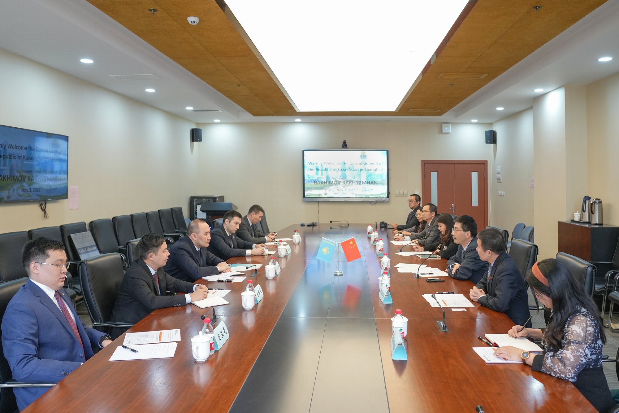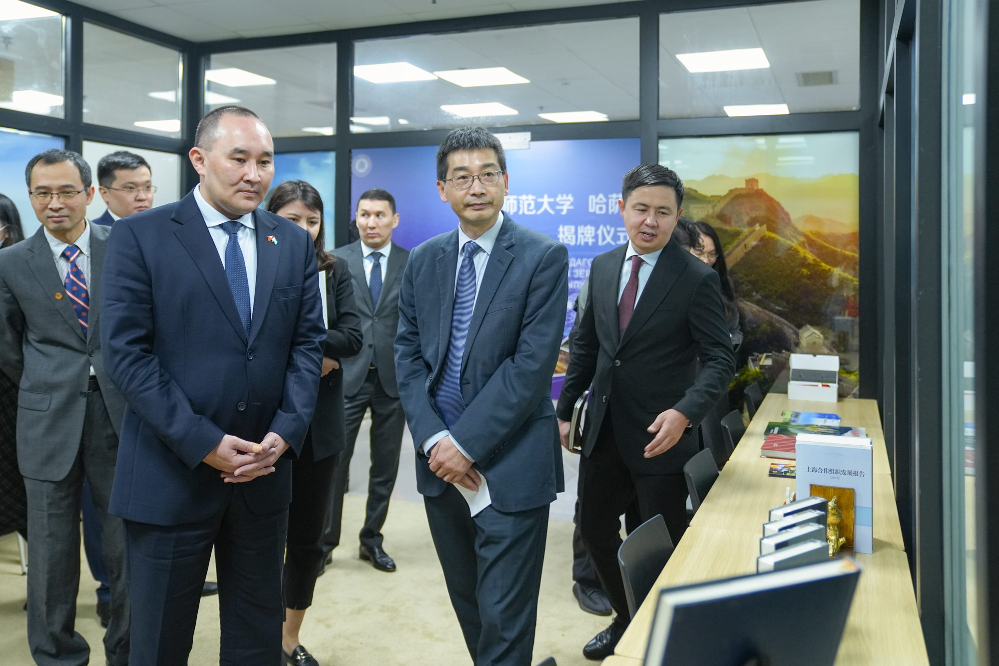 仪式前,副校长顾红亮会见了拉合莫夫∙拉合穆江一行,并共同参观了华东师大哈萨克斯坦研究中心。