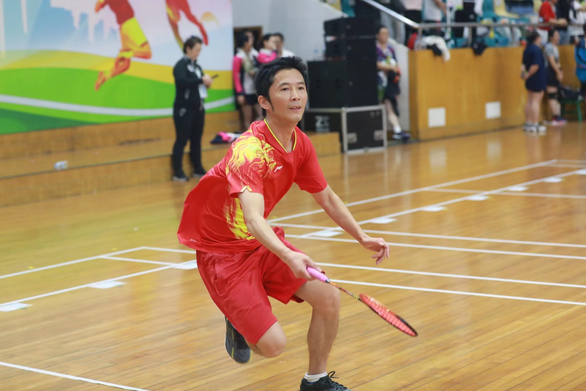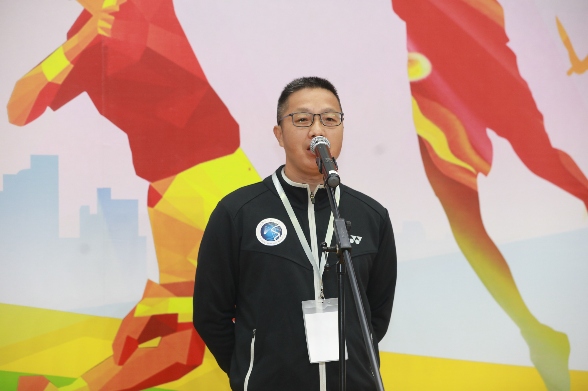 运动员代表、前羽毛球国家队队员、世锦赛女子单打冠军卢兰,裁判员代表沈军明先后上台代表运动员和裁判员郑重宣誓。