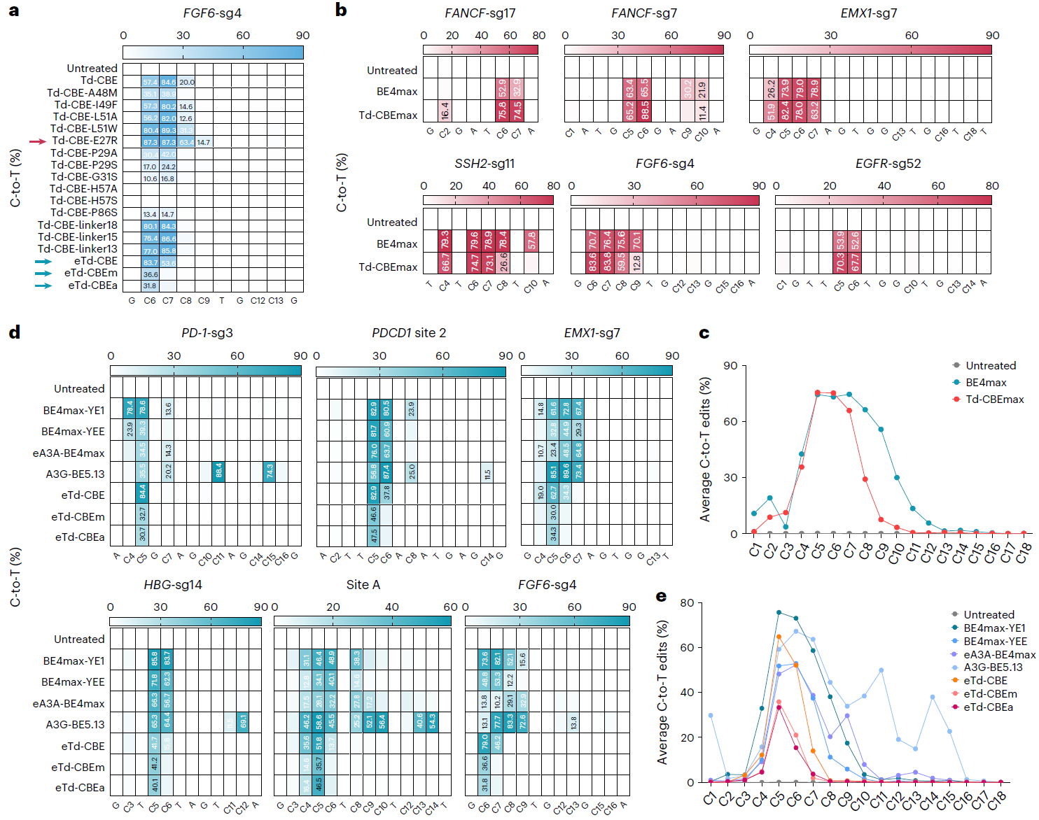 图1:TadA-8e蛋白结构及Td-CGBE特性评价