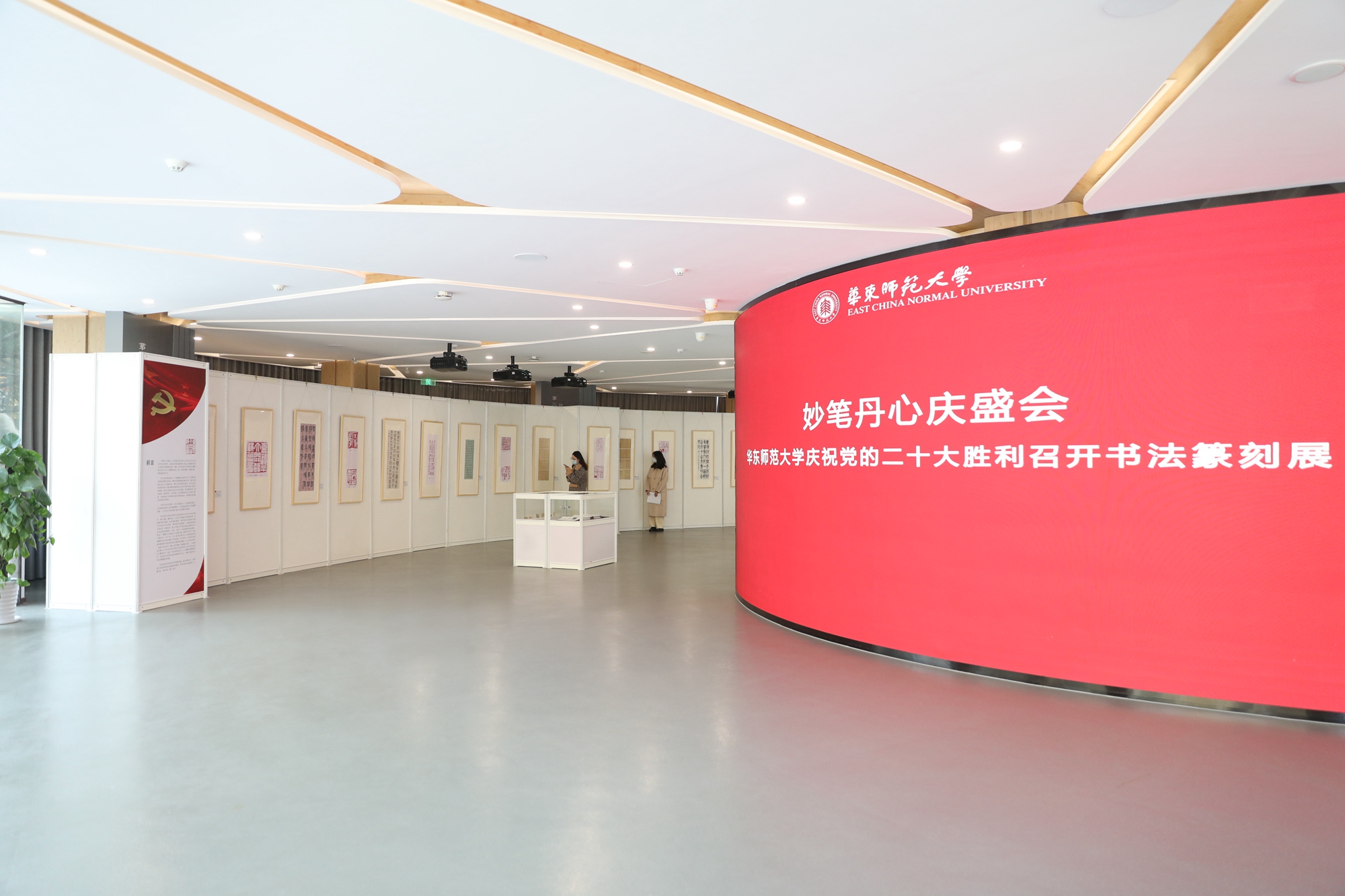 丽娃河畔,华东师大学子用笔墨书写热爱,用篆刻留住感悟。11月15日上午,“妙笔丹心庆盛会——3245澳门新莆京庆祝党的二十大胜利召开书法篆刻展”在普陀校区孟宪承·刘佛年教育成就陈列室开幕。