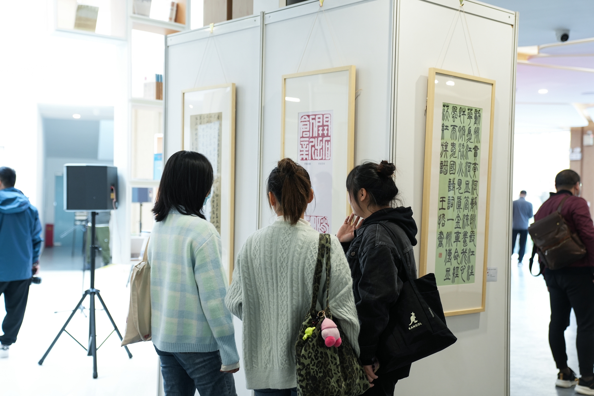艺术教育硕士中心名誉主任许红珍,人文与社会科学研究院院长朱军文,美术学院党委书记刘麒,书法系主任、教育部中华优秀传统文化篆刻传承基地主任张索以及党委宣传部、团委、教务处、研究生院等职能部门负责人参加开幕式。