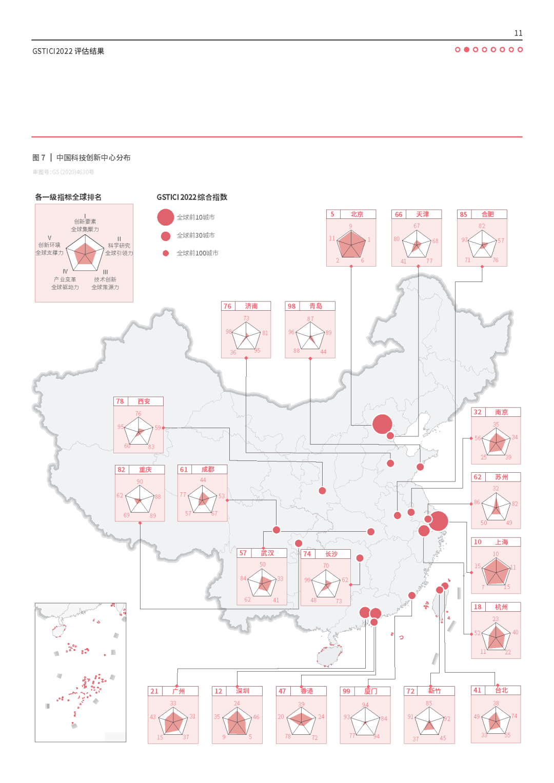 在11月27日闭幕的首届世界地理大会上,3245澳门新莆京全球创新与发展研究院组织相关力量,从创新要素全球集聚力、科学研究全球引领力、技术创新全球策源力、产业变革全球驱动力和创新环境全球支撑力五个维度,对全球130个城市的科技创新发展水平进行科学测度,形成《全球科技创新中心发展指数2022》(Global S&T Innovation Center Index 2022,GSTICI2022),面向全球发布。
