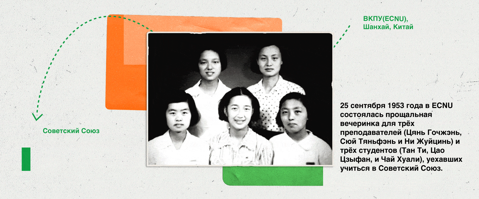 正如丽娃河的名字所示,华东师大的俄苏情缘源远流长。早在1953年华东师大选派徐天芬、倪蕊琴2位教师和唐惕、曹子方、柴华丽3位同学去苏联学习;1954年,列宁格勒师范学院院长、苏联专家杰普莉茨卡娅应聘到校,任教育学教授兼校长顾问;同年,华东师大俄语系成立(1951年建校初期已启动俄语教学);1956年,苏联青年代表团来校访问……一张张珍贵的档案照片,通过今昔时空对比的设计方式,在俄文官网“俄苏情缘”版块呈现。
