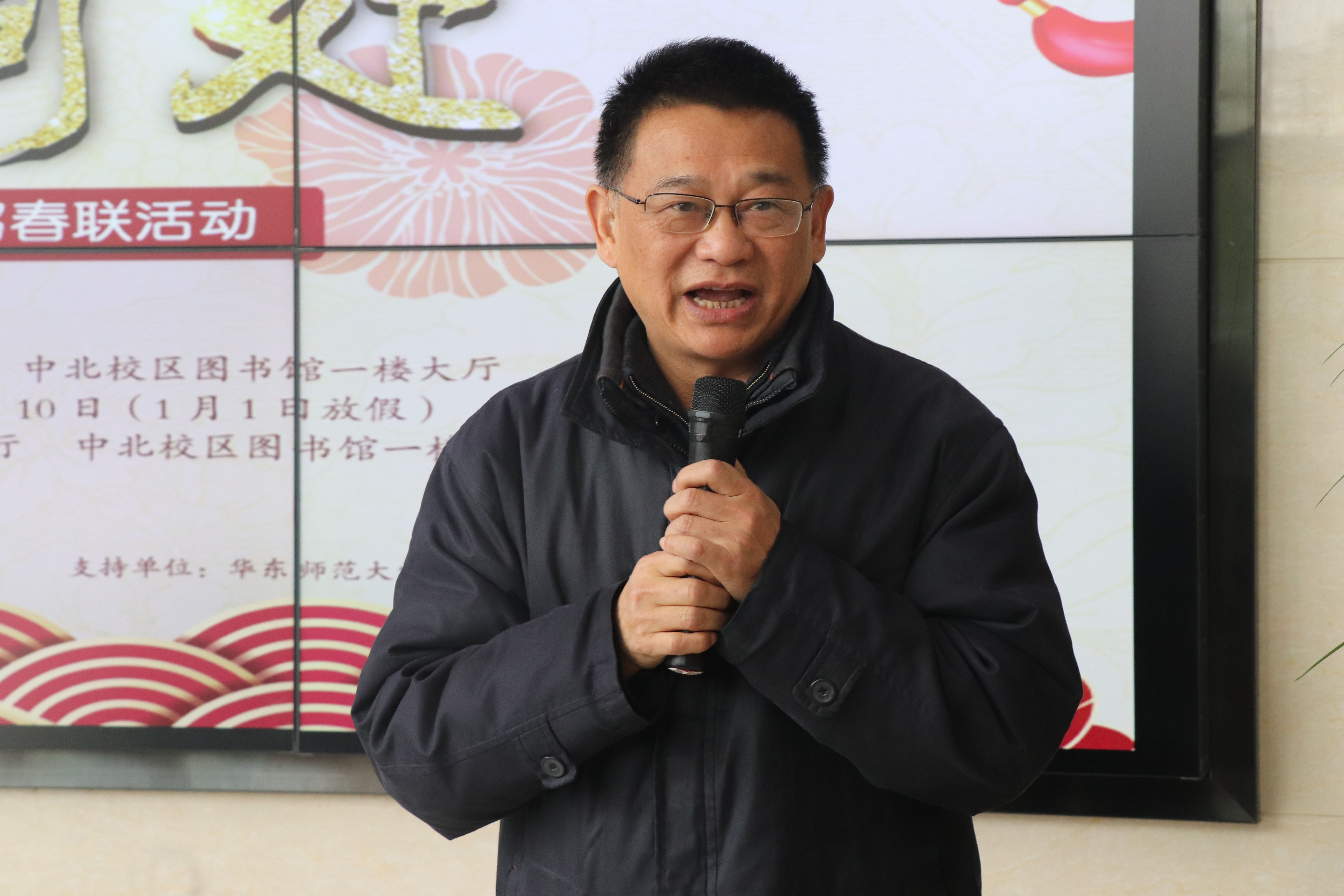 图书馆馆长胡晓明教授首先致辞。他把春联比作春天的眼睛,成双成对,明媚动人,像是大地张开了明亮的眼睛。他说,春联成双成对的这种关联,像是天地间好东西之间的亲密关系,是天地万物的精气神,在新旧交替的年关,召唤美的精灵,洋溢着浓浓的喜气。同时,春联体现了中国文化的温度,是人心、人性、人情的集中温暖的表达;它又是一种综合的艺术,是书法的舞蹈,文学的音乐,民俗的展演,又是时代与政治的窗口。