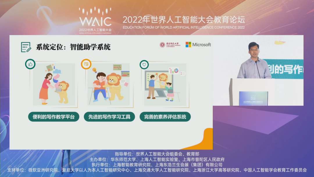 总结 2022 年中国在各领域、各行业的取得的发展成果和未来趋势,积极引导经济和社会发展和谐共进,人民日报社旗下环球时报、环球网近期联合开展了2022 环球趋势案例征集活动。华东师大上海智能教育研究院与微软亚洲研究院联合开发的“小花狮作文智能辅导系统”,作为科技创新的典型案例成功入选。