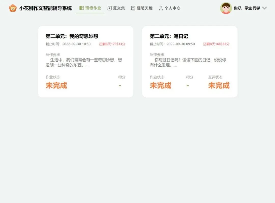 “小花狮”作文的学生端班级作业