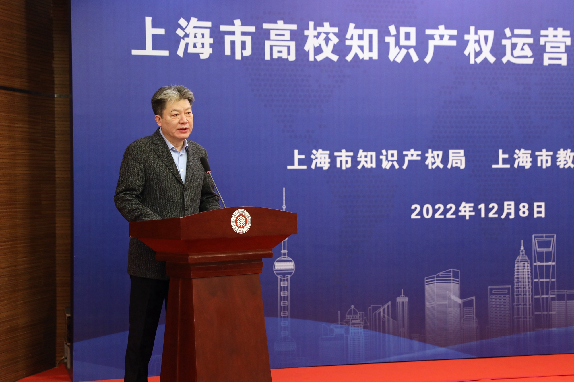 12月8日上午,上海市高校知识产权运营中心授牌仪式在华东师大举行。上海市政府副秘书长黄永平出席仪式并讲话。市知识产权局局长芮文彪与市教委副主任孙真荣出席并共同为高校知识产权运营中心授牌。市知识产权局副局长杨慧主持授牌仪式。