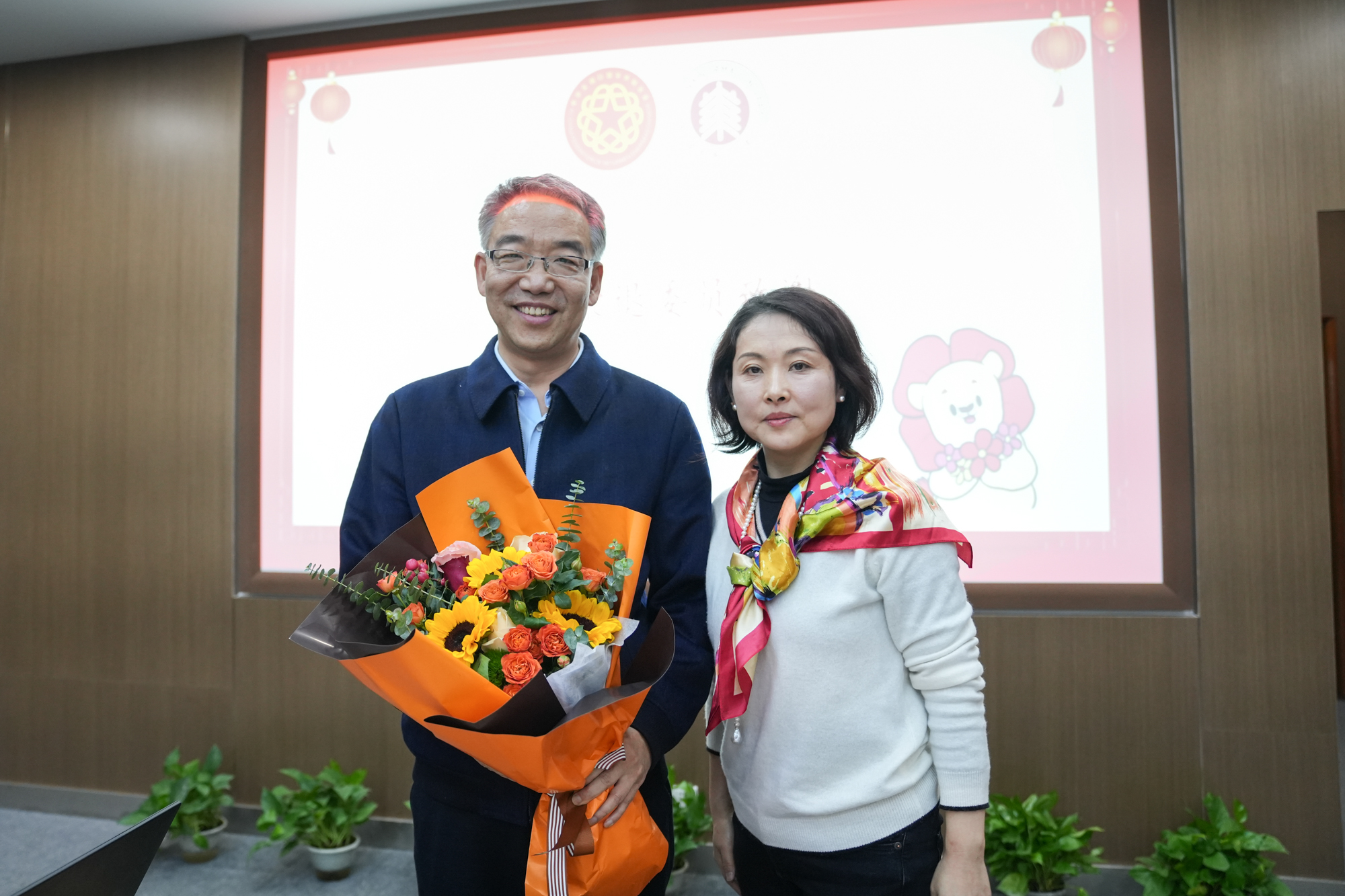 大会向离任委员宣读致敬信,并为上一届离任委员代表赠送鲜花,感谢他们多年来为校侨联事业作出的贡献。