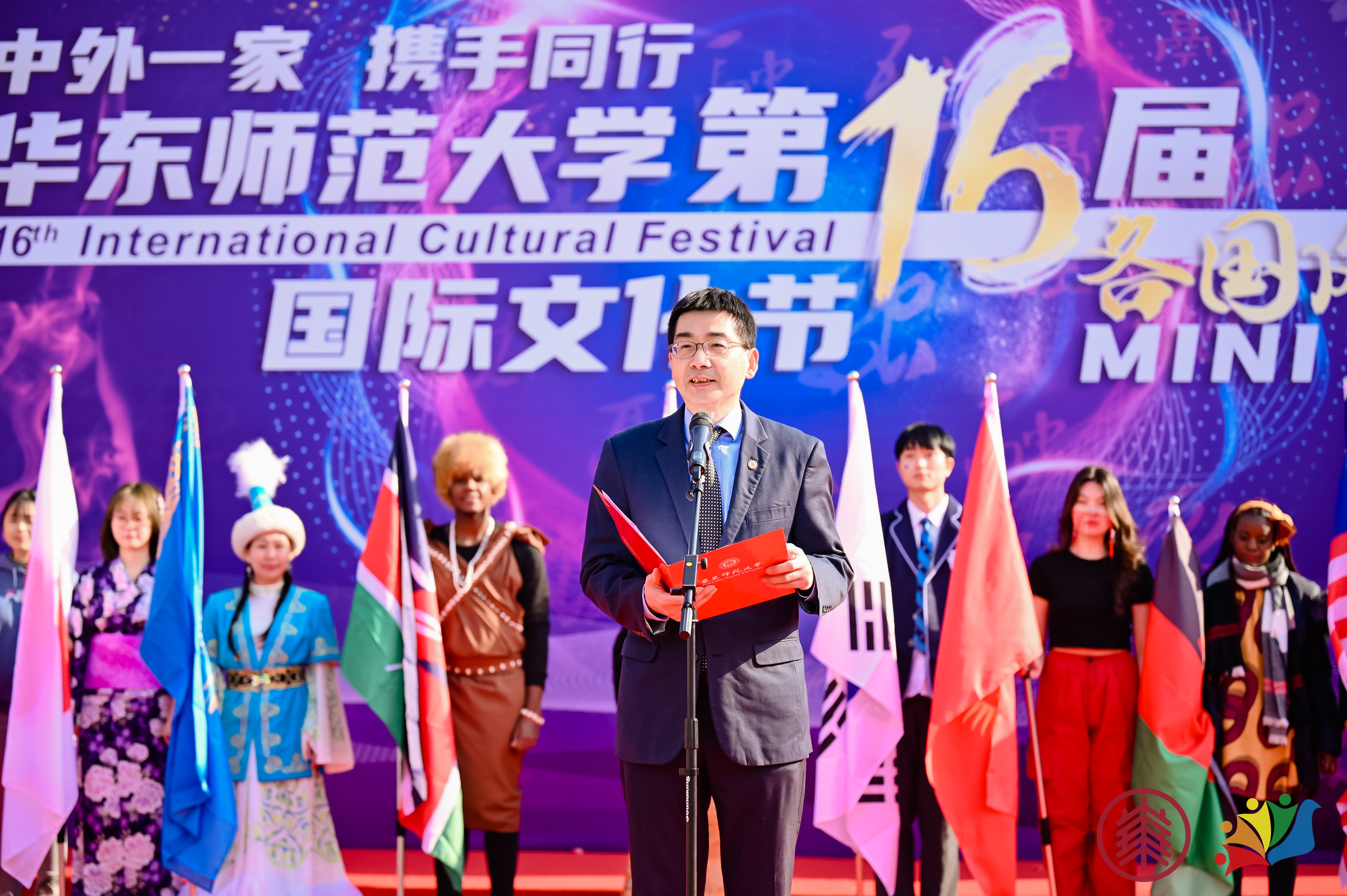 12月11日上午十点,伴随着44个国家的国际学生旗手入场,第十六届国际文化节正式拉开帷幕。华东师大副校长顾红亮在开幕式致辞中表示,今年国际文化节的核心,关键在于一个“融”字,其中包含了大上海保卫战期间,国际学生志愿者参与校园抗疫、与学校并肩作战的“共融之心”,境外国际学生踏上万里归途、回到学校怀抱的“共融之情”,以及国际文化节所彰显的推动各国文化交流互鉴的“共融之美”。他强调,是中外师生携手共同努力才铸就了“留学师大”的卓越品牌。
