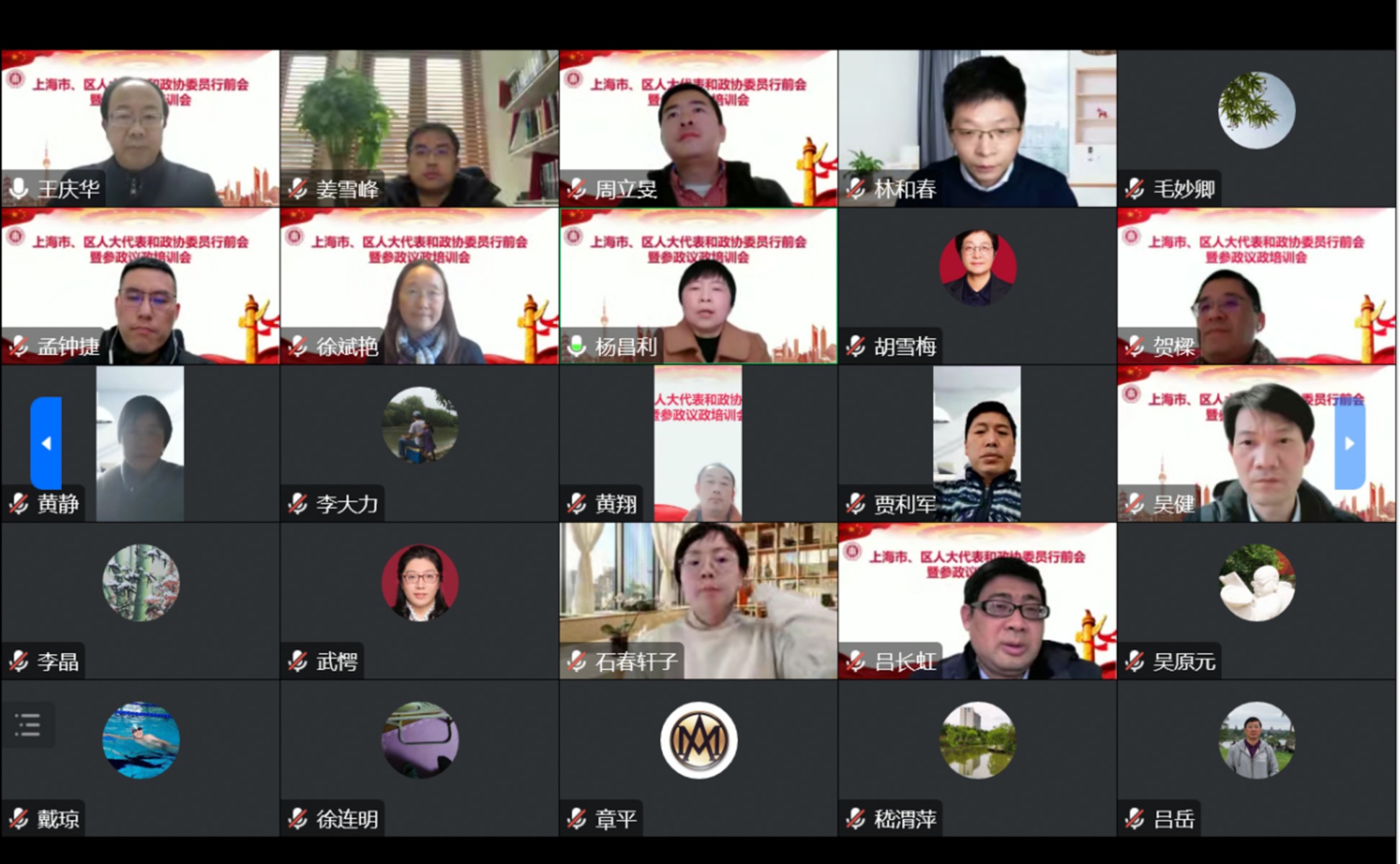 为了帮助代表委员提高履职能力,更好担负起新时代人大代表、政协委员的使命责任,12月29日下午,我校在线举行上海市、区人大代表和政协委员行前会暨参政议政培训会。校党委副书记杨昌利出席并讲话,会议由校党委常委、统战部部长兼机关党委书记王庆华主持。市、区人大代表和政协委员近30人参加会议。
