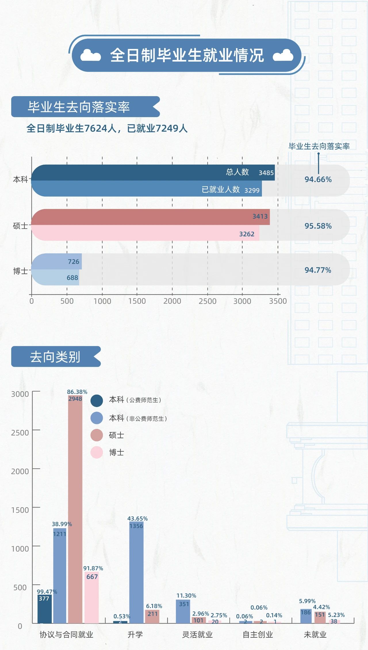 截至10月31日,华东师大2022届毕业生去向落实率为95.37%,其中全日制毕业生毕业去向落实率为95.08%,非全日制毕业生毕业去向落实率为96.74%。