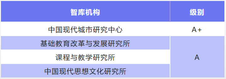 服务“十四五”时期国家发展战略,智库专家聚焦经济社会发展中的重大理论和实践问题,开展前瞻性和应用性研究。中国现代城市研究中心、基础教育改革与发展研究所、课程与教学研究所、中国现代思想文化研究所等四家机构入选“CTTI2022年度高校智库百强榜”、9个智库案例入选CTTI2022年度智库最佳案例与优秀成果推介名单。