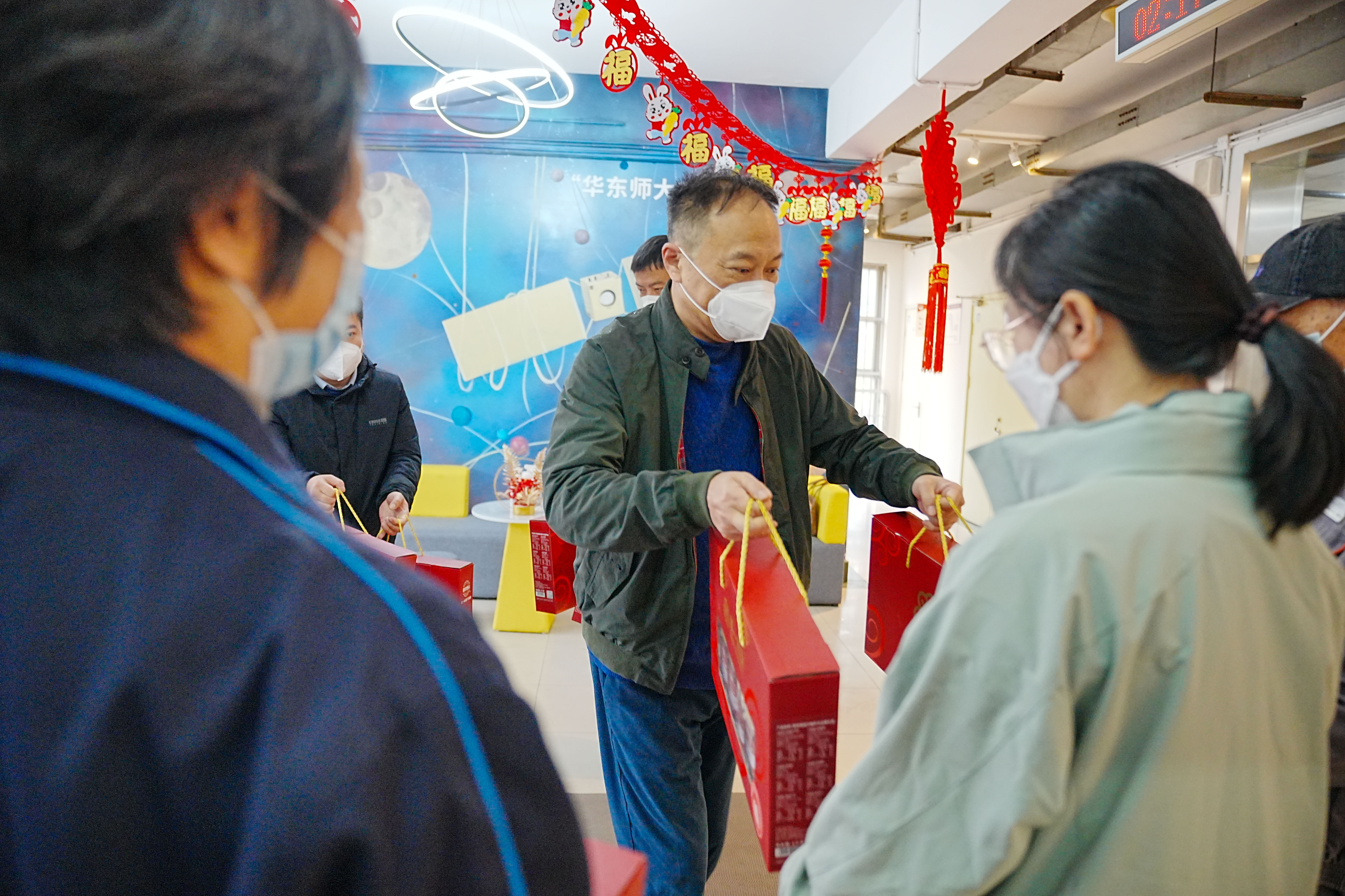 癸卯兔年春节来临之际,带着美好祝福,校领导梅兵、杨昌利、戴立益走访慰问了两校区春节期间在岗教职员工和留校学生。学校办公室、学生工作党委、保卫处、后勤保障部等相关人员参加了慰问活动。