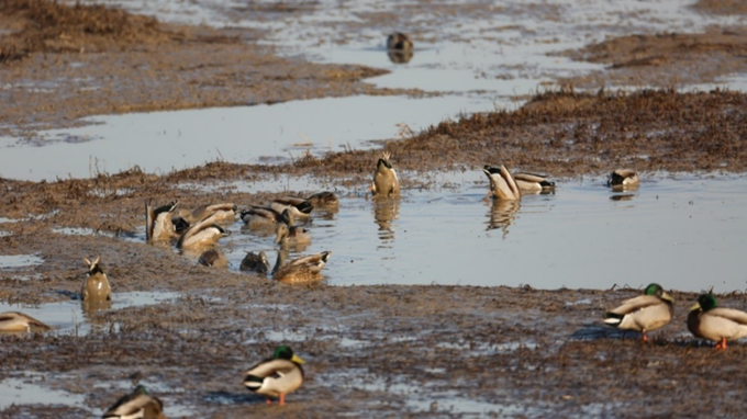 修复后的海三棱藨草为越冬水鸟提供食物(崇明东滩鸟类国家级自然保护区提供照片)