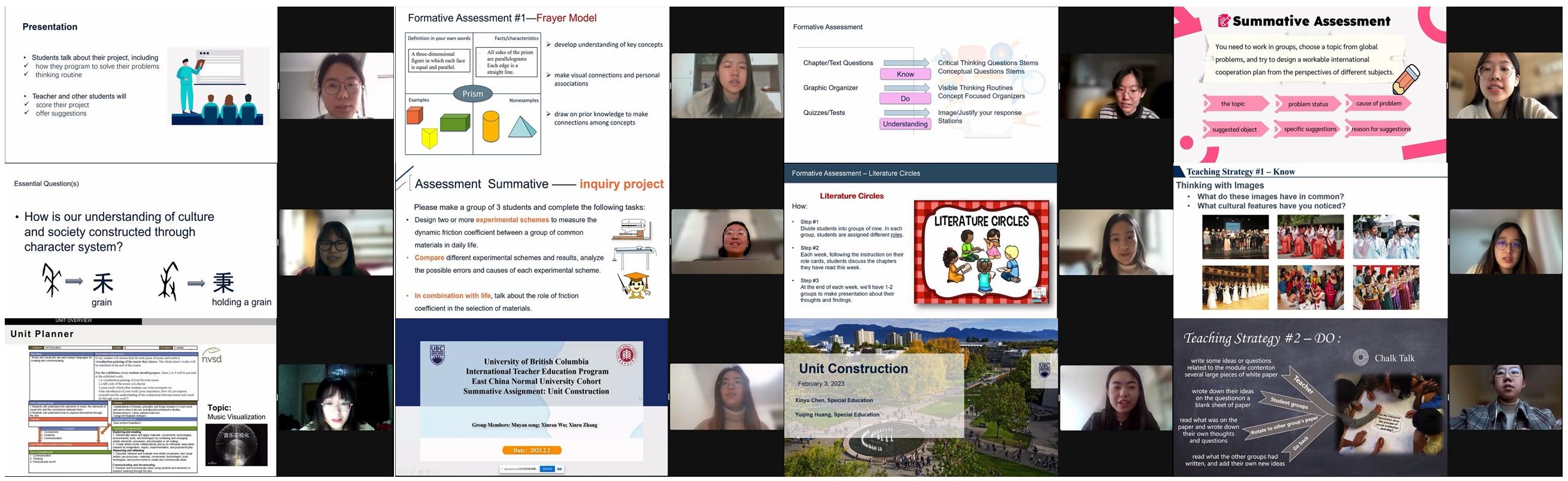 项目涵盖四个模块的教学内容。从加拿大历史文化与教育模式到UbD框架(基于理解力的教学设计)的深入探究,再到创新教学法及教学实践的优化案例,遵循教育者的逻辑体验课程改革的思维模式,思考课程设计的各个环节并统筹各要素,贯通性的课程讲授搭配专题性讲座,还提供了自主学习和探究的资源,作为课外延伸。加方教师团队详细讲解了BC省课程设计中UbD框架及不同教学策略的应用,师生积极互动,交流教学策略应用的体验与疑惑,推动教学向批判性创新性前进,促进知识的内化与应用。