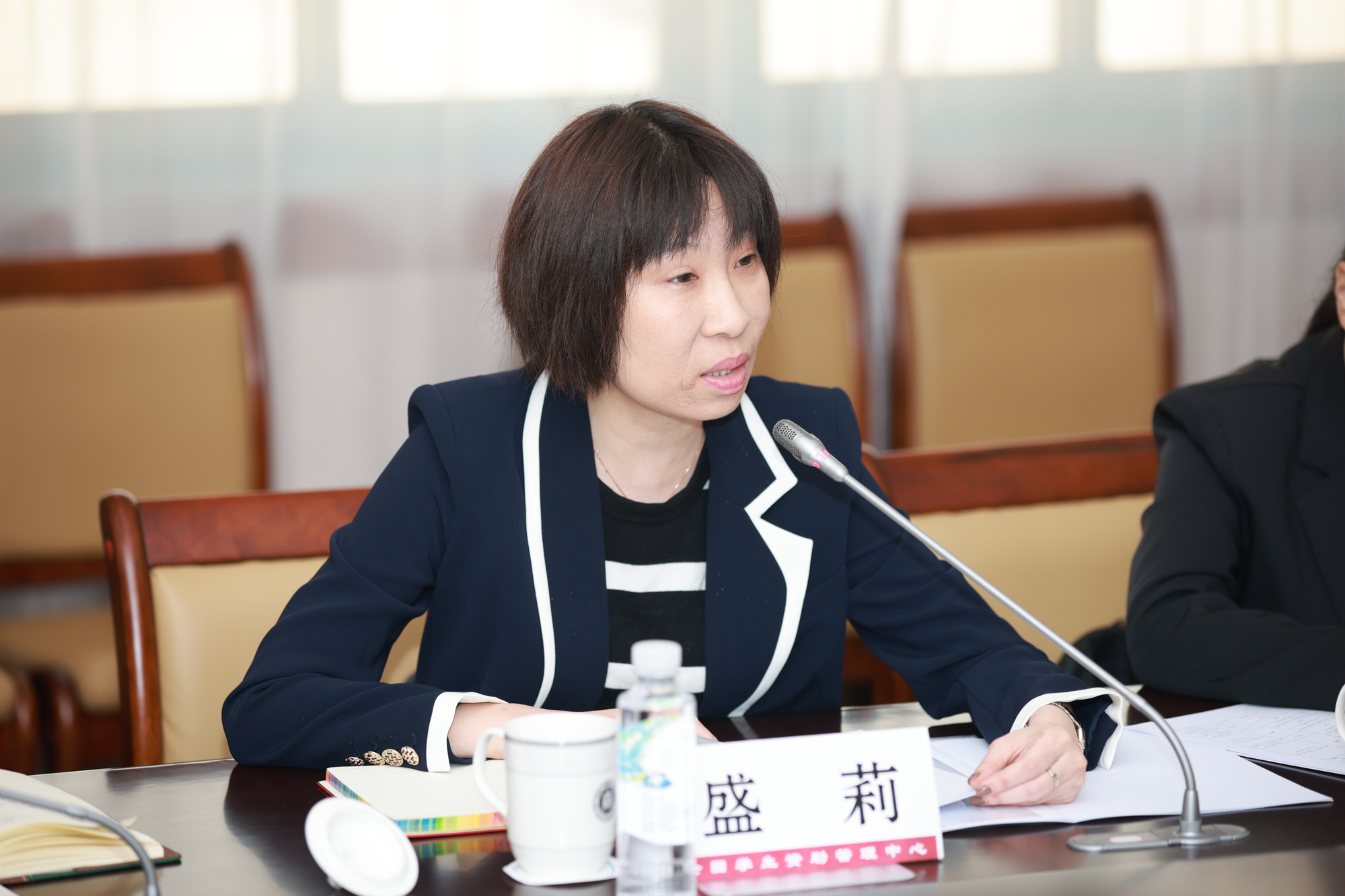 全国学生资助管理中心研究培训处副处长盛莉主持座谈会
