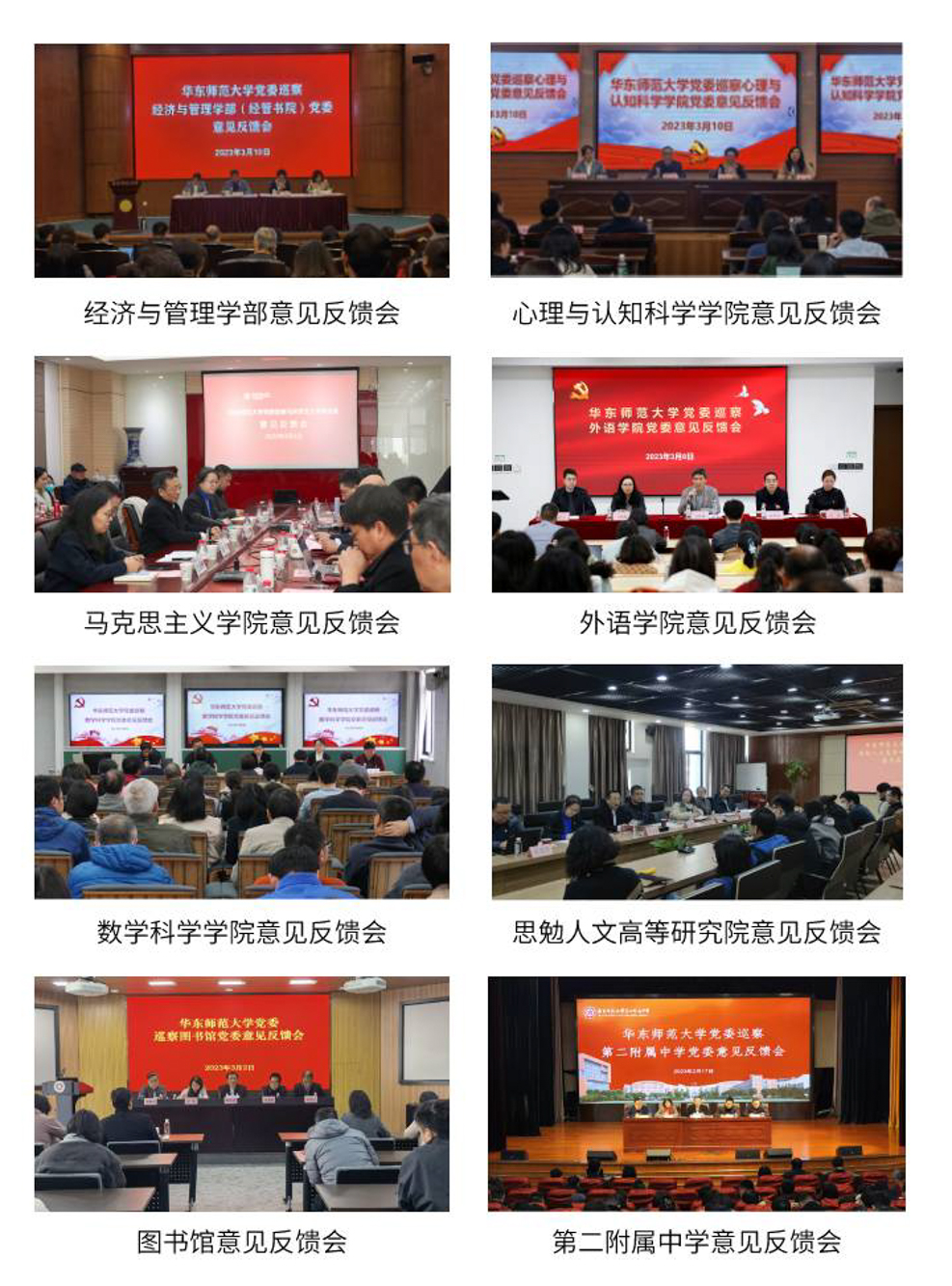 近日,十三届校党委第九轮第一至第四巡察组分别向经济与管理学部(经管书院)、心理与认知科学学院、马克思主义学院、外语学院、数学科学学院、思勉人文高等研究院、图书馆、第二附属中学等8个被巡察单位党组织反馈了巡察情况。