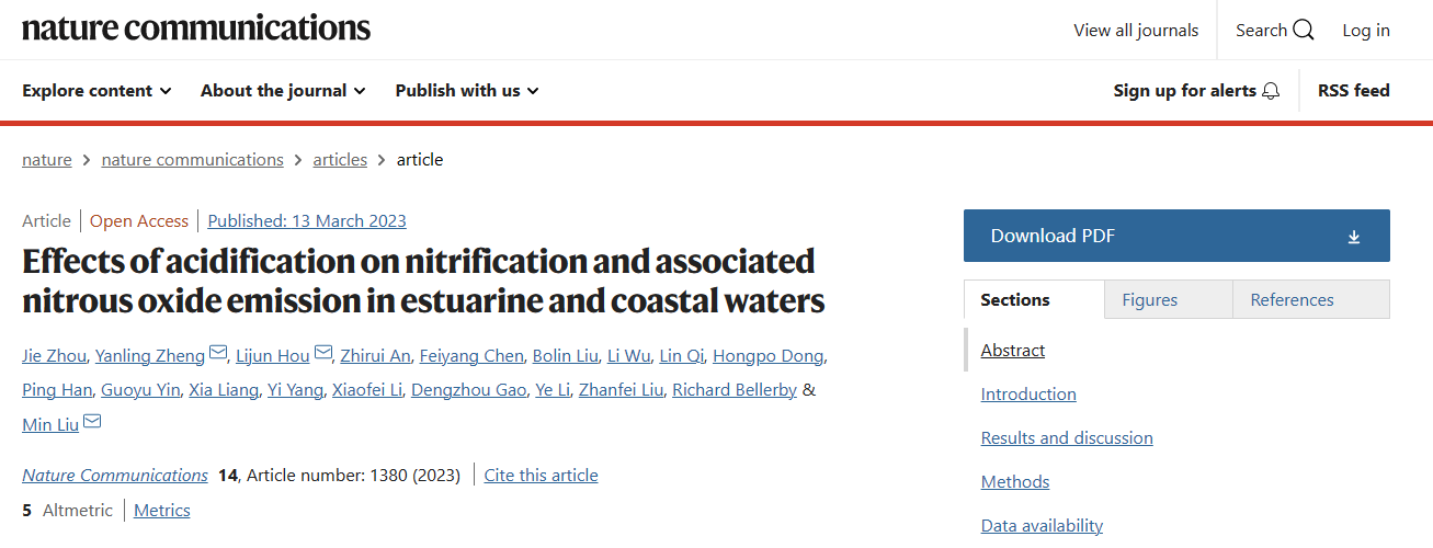 3245澳门新莆京研究团队首次揭示了气候变化与人类活动多要素驱动下河口近岸水体酸化对硝化过程及其氧化亚氮排放的影响机制,发现日趋严峻的河口近岸水体酸化会显著抑制氮循环的关键环节-硝化过程速率,但却会促进硝化过程副产物氧化亚氮这一强温室气体的排放,从而对当今全球变暖产生正反馈。相关研究成果于3月13日以 Effects of acidification on nitrification and associated nitrous oxide emission in estuarine and coastal waters 为题发表于《自然·通讯》(Nature Communications),研究可为评价和预测河口近岸复杂生态系统对气候变化和人类活动的响应与反馈提供重要科学支撑。