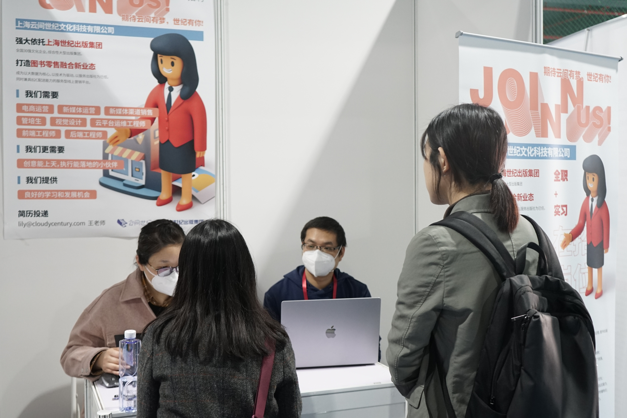 招聘单位工作人员表示:“这是疫情后第一次参加华东师大校园线下双选会,感受到了学生们的求职热情”。同时,工作人员也提醒学生,“单位在招聘面试时会特别关注:求职者待人接物的方式,沟通时展现出来的知识储备、思维的完整性,以及大家思考问题的方向。”