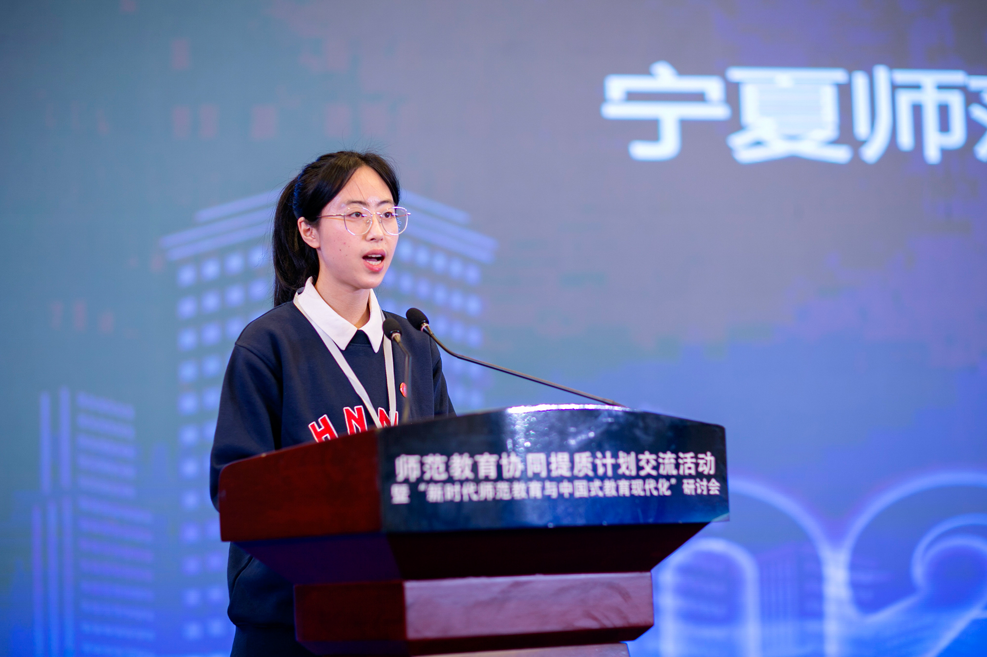 学生代表、宁夏师范学院2021级思想政治教育专业学生潘梦凡作汇报发言