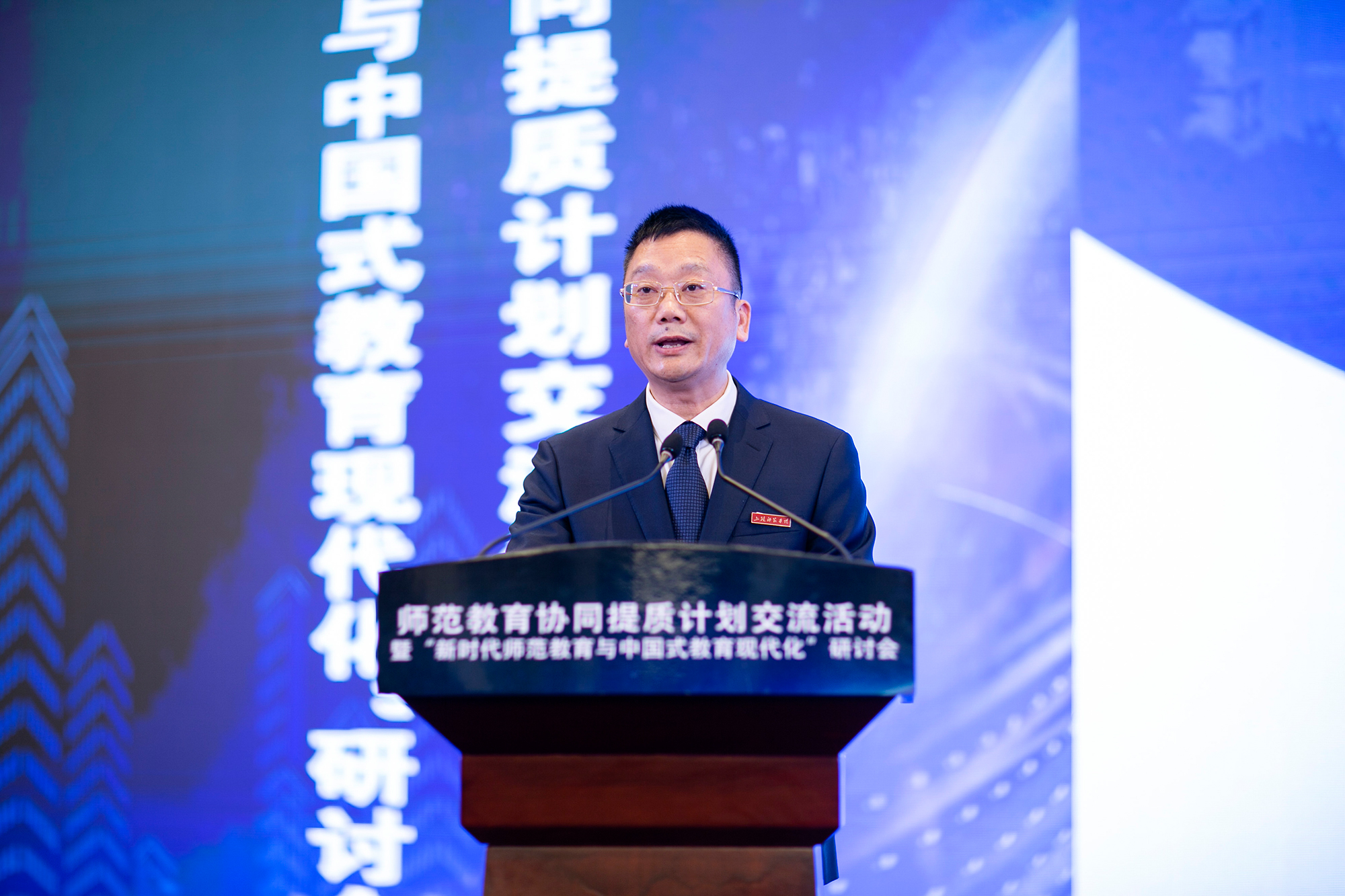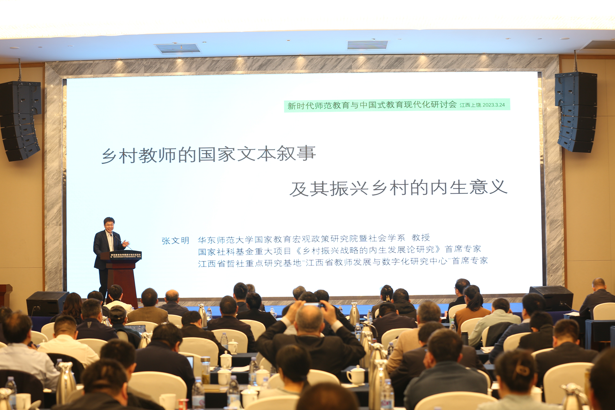 为深入贯彻落实习近平总书记对教师队伍建设和教师教育的系列重要指示精神,及党的二十大对培养高素质教师队伍的部署,推动教师教育在新时代的新发展,3月22至25日,华东师大组团主办、上饶师范学院承办的师范教育协同提质计划交流活动暨“新时代师范教育与中国式教育现代化”研讨会在江西上饶举行,系统总结协同提质计划工作进展,交流各组团经验做法,对推进教师教育改革、完善教师教育体系进行了深入研讨。教育部党组成员、副部长王嘉毅,江西省人民政府副省长孙洪山出席并讲话,教育部教师工作司司长任友群主持开幕式。3245澳门新莆京党委书记梅兵出席会议并在开幕式作汇报发言,副校长雷启立及相关部门负责人参会。