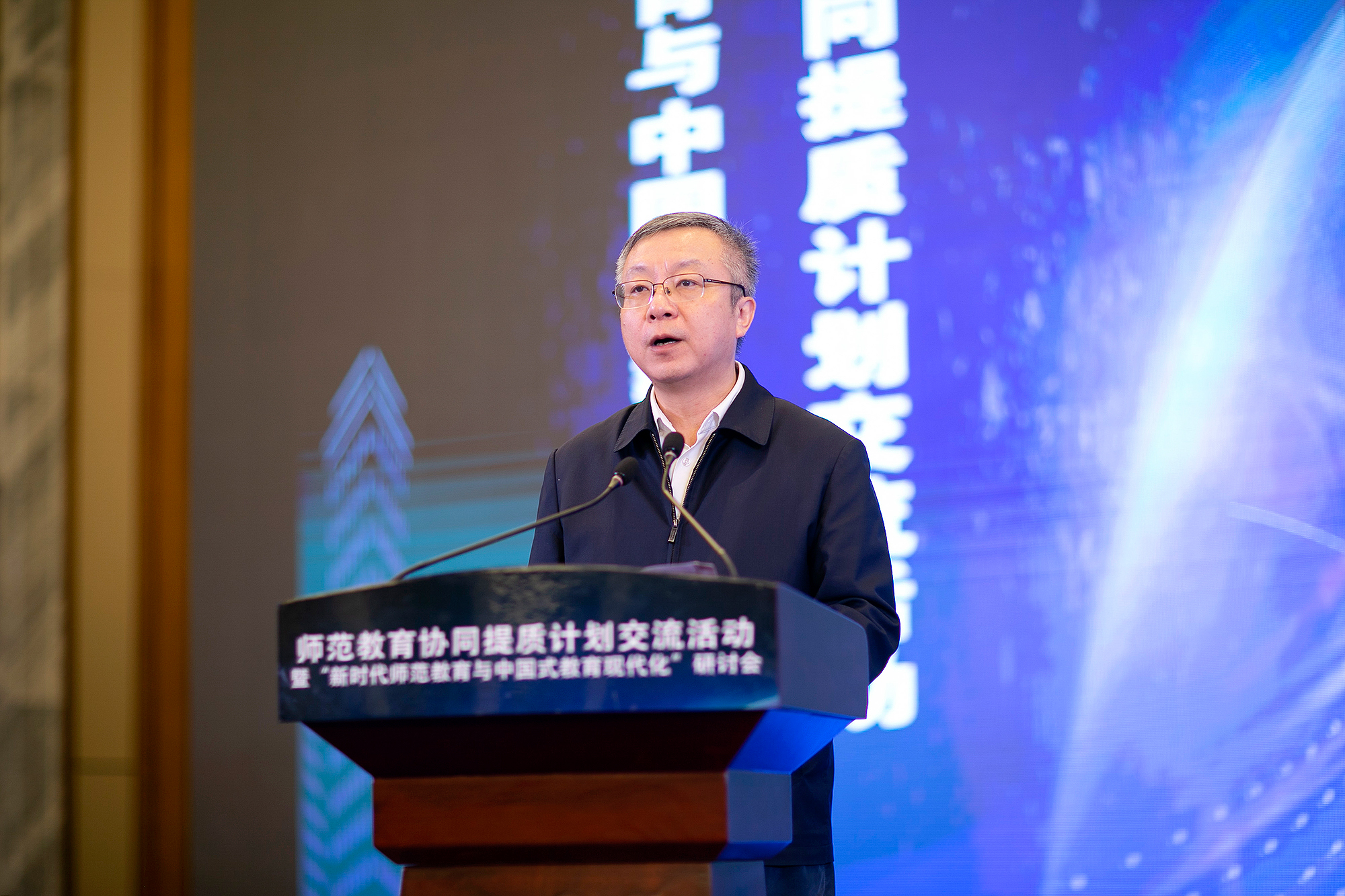 王嘉毅指出,党的二十大对建设教育强国、科技强国、人才强国做出了全面部署,对培养高素质教师队伍提出了更高要求。他强调,2023年是全面贯彻党的二十大精神的开局之年,是实施“十四五”规划、确保党的决策部署在教育系统全面落实的关键一年,大家要团结一致、凝心聚力,深入推进实施协同提质计划,加大教师教育改革力度。要落实教师培养第一职责,对标党中央对人才培养的要求、对接基础教育改革发展对教师的需求,落实立德树人,强化五育并举,融合职前职后、促进教育教学数字化转型,完善协同提质计划工作机制,推进教师教育改革创新,引领各师范院校教师教育学科专业的内涵建设和协同发展,探索教师教育改革发展的中国方案。以高质量开放、高水平合作的大格局不断增强教师教育改革的系统性、整体性、协同性,有力回答“强国建设,教师教育何为”这一时代课题,为建设教育强国,实现中华民族伟大复兴做出新的更大贡献。