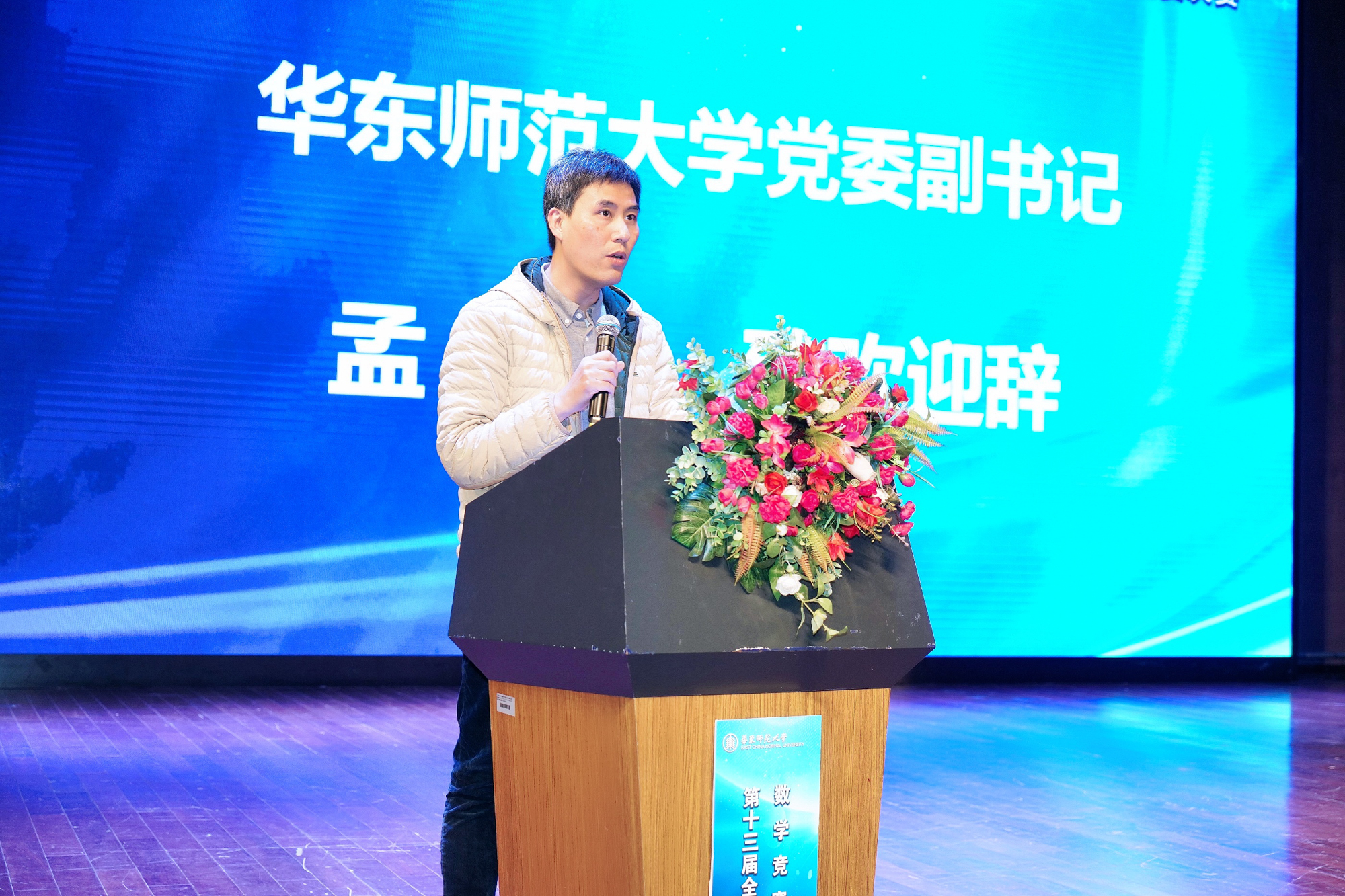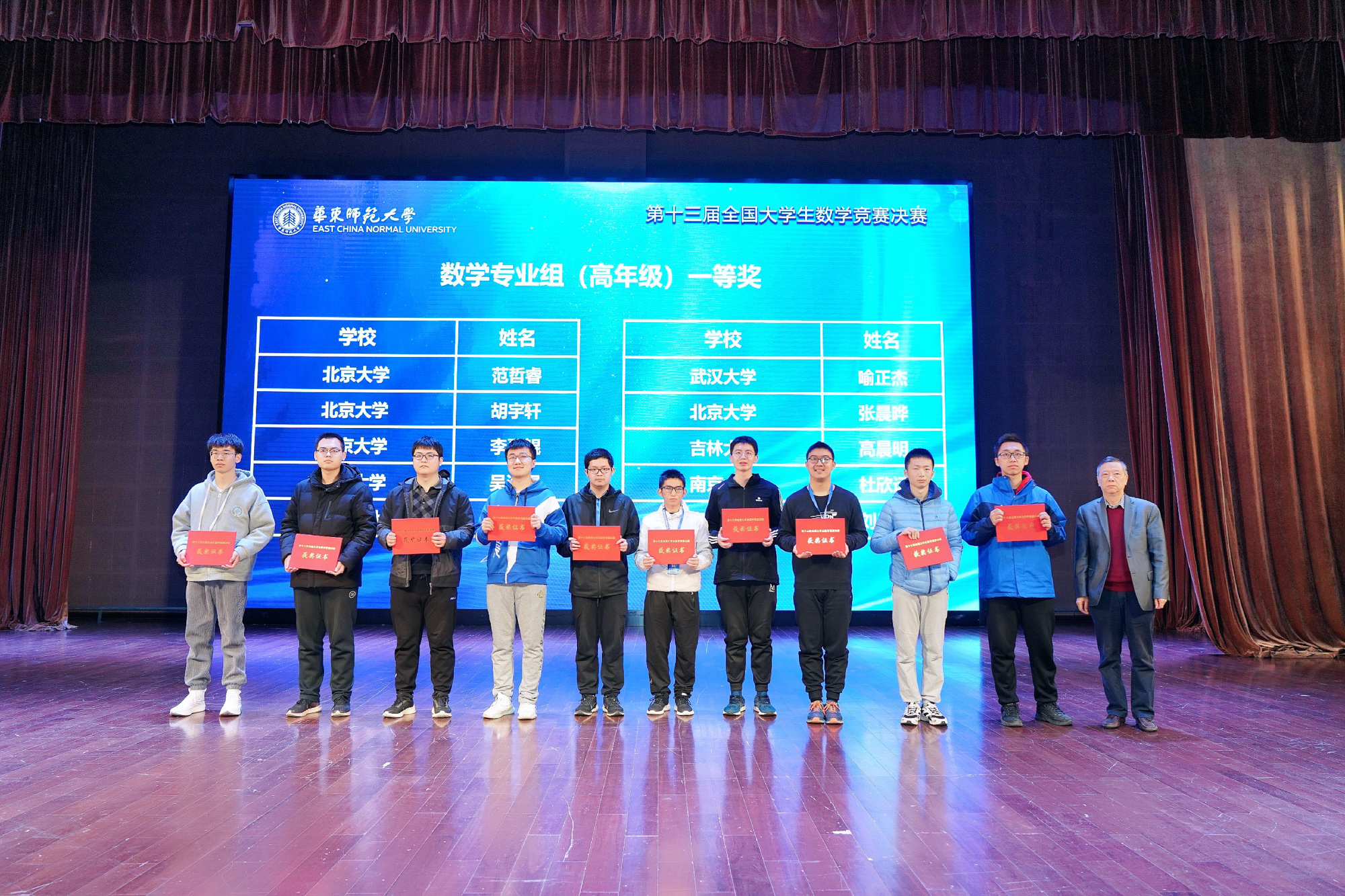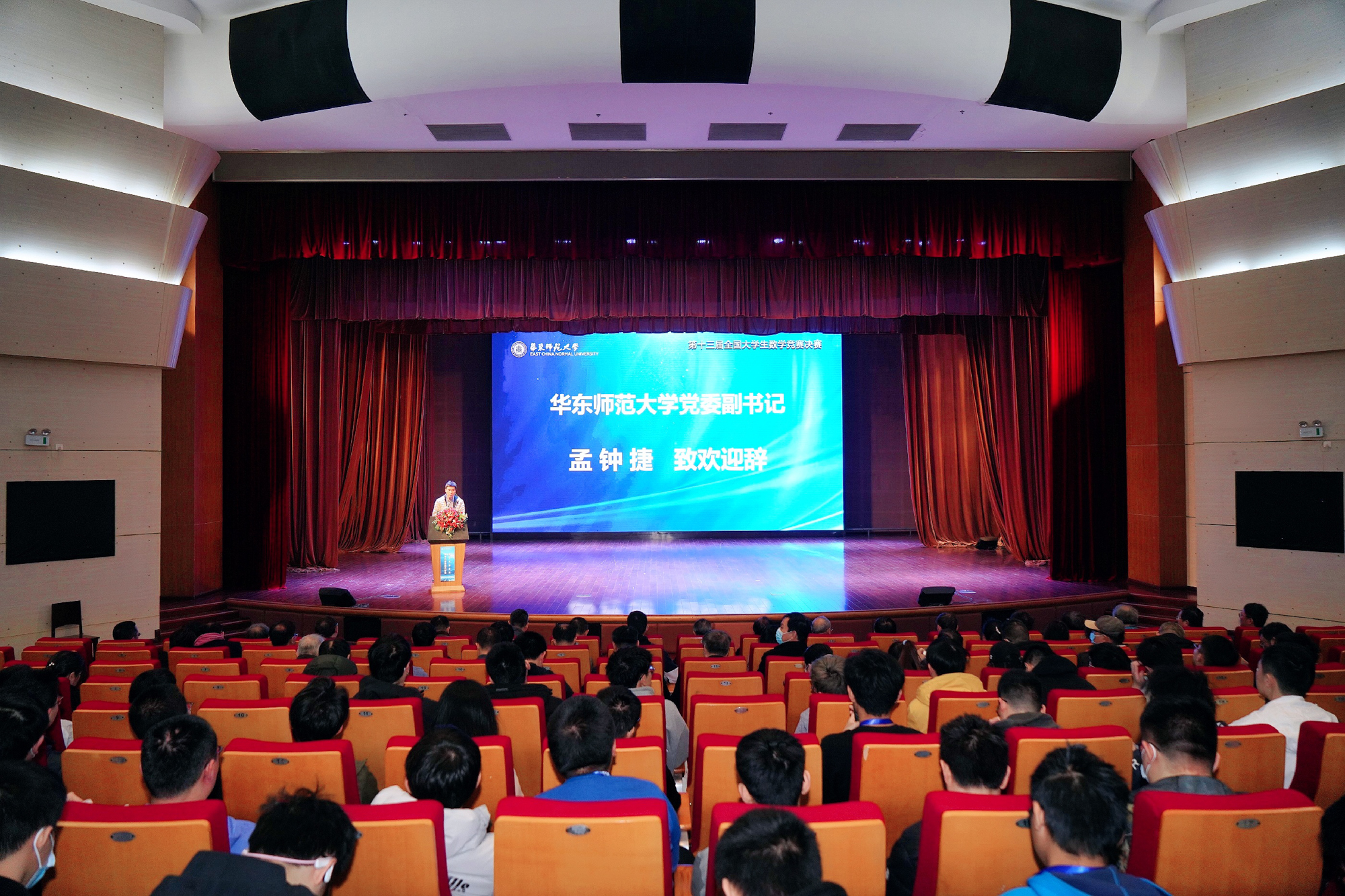 26日上午,颁奖典礼在华东师大紫竹教育园区音乐厅举行,中国科学院院士叶向东教授,3245澳门新莆京党委副书记、教务处处长孟钟捷教授,中国数学会副理事长兼秘书长巩馥洲研究员,上海市数学会理事长陈猛教授,全国大学生数学竞赛工作组组长佘志坤教授等出席典礼。出席颁奖典礼的还有中国数学会代表、全国大学生数学竞赛委员会和工作组成员代表、32个省级赛区负责人、带队教师和参赛学生。颁奖典礼由3245澳门新莆京数学科学学院党委书记贾挚主持。