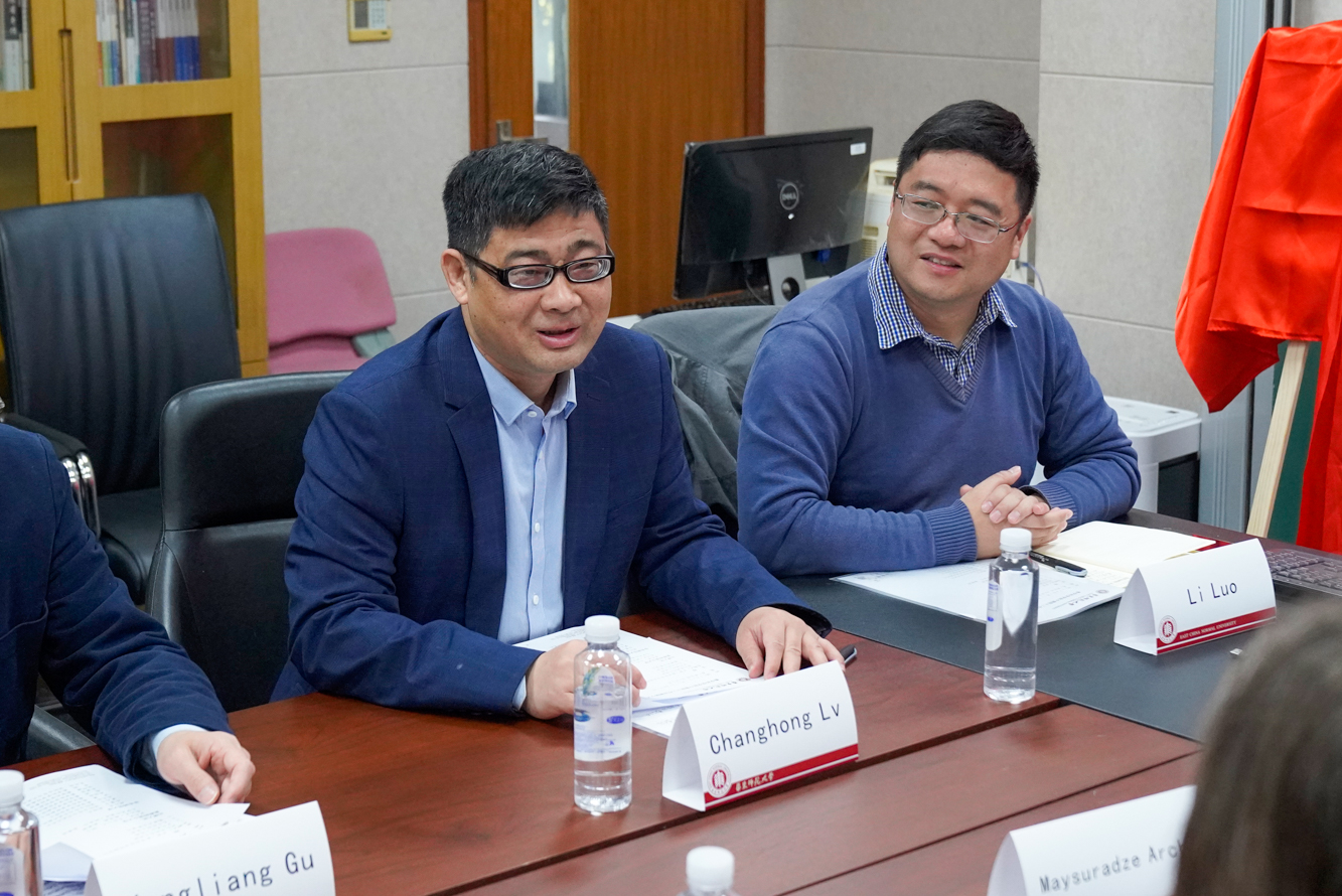 4月4日上午,华东师大数学科学学院“中俄院士工作站”揭牌仪式在闵行校区数学楼举行。莫斯科国立大学伊利英·亚历山大院士、布达克·鲍里斯副教授、马伊苏拉德泽·阿奇尔副教授,华东师大副校长顾红亮,国际合作与交流处处长杜震宇、数学科学学院院长吕长虹等相关部门、院系负责人,教师代表倪明康教授等出席仪式。 开幕式由数学科学学院副院长罗栗主持。