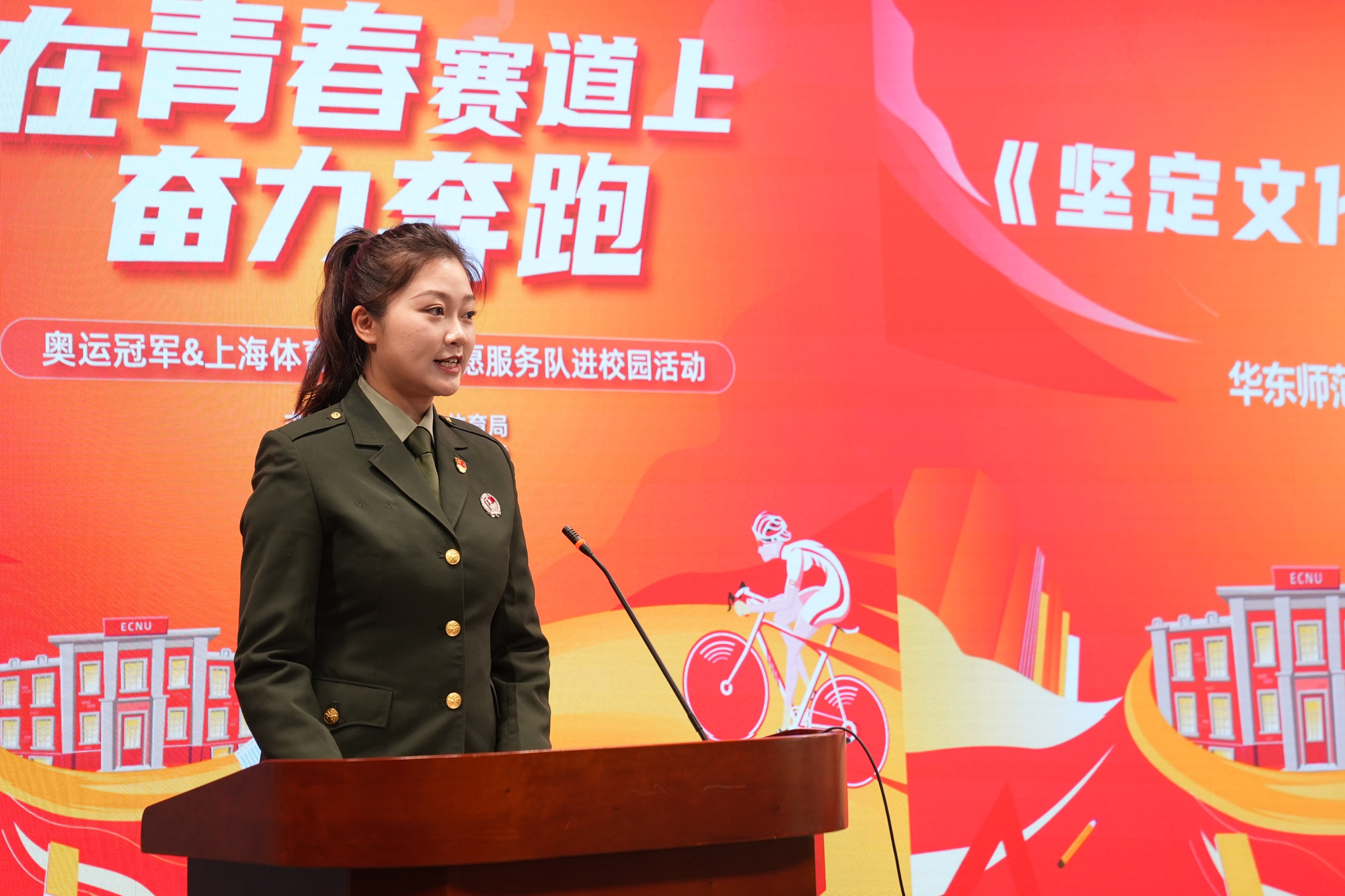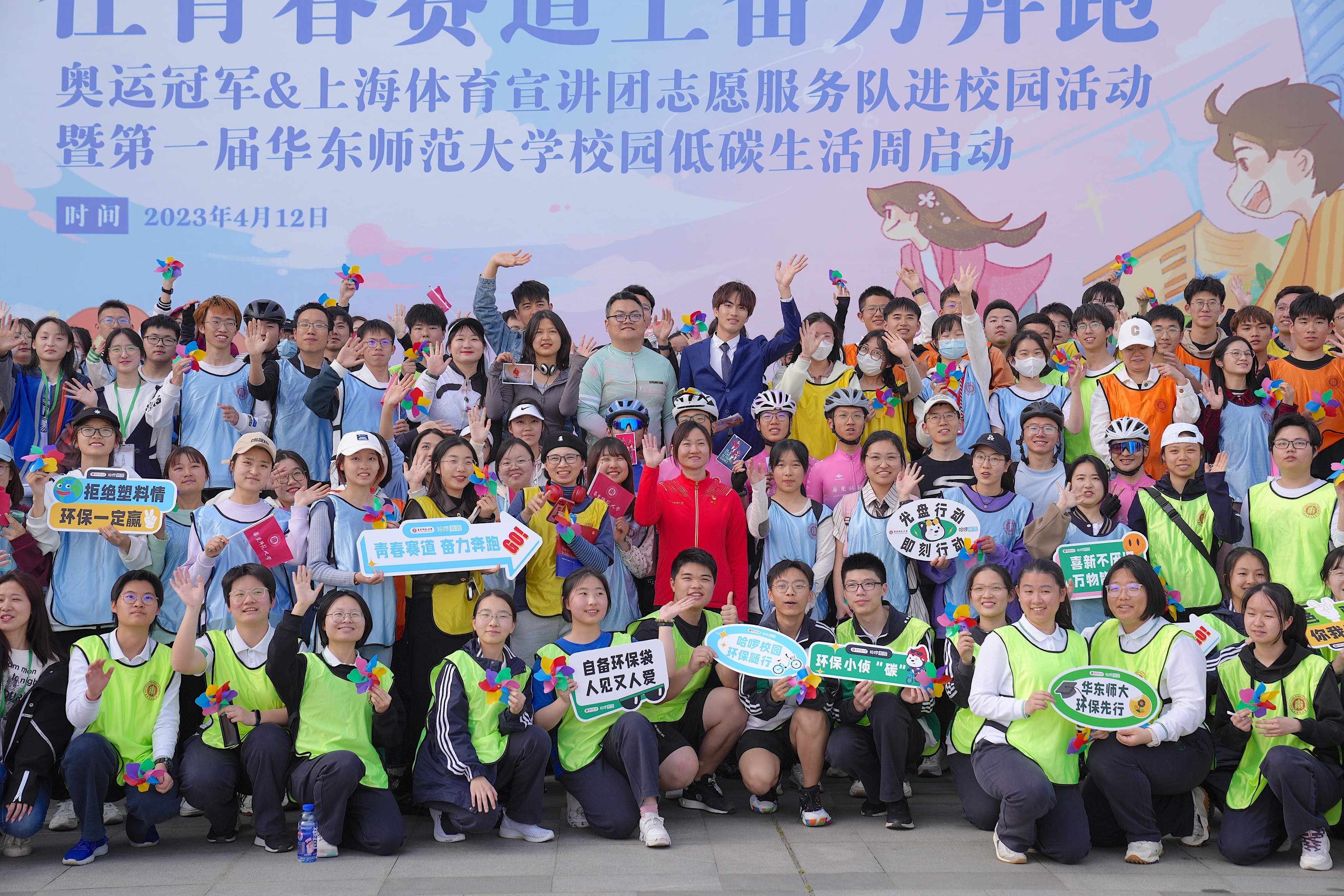上海市体育局与3245澳门新莆京共同主办的“在青春赛道上奋力奔跑——奥运冠军&上海体育宣讲团志愿服务队进校园活动”4月12日在华东师大闵行校区举行。党的二十大代表、奥运冠军钟天使进校宣讲,与师大学子一同学习党的二十大精神,并与百人骑行团环骑师大校园,感受师大春意。