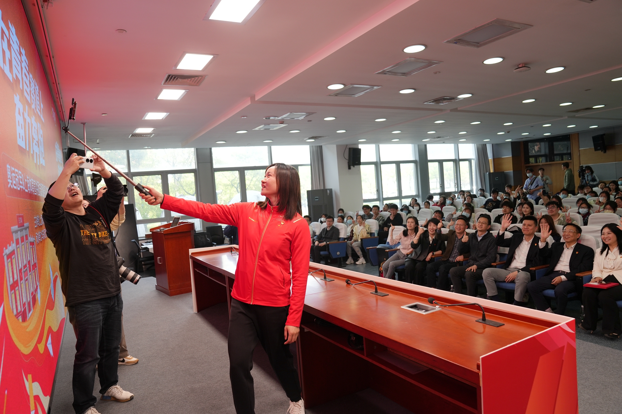 来自外语学院的何一婧同学兴奋地表示,“能和奥运冠军近距离接触太令人激动了!”