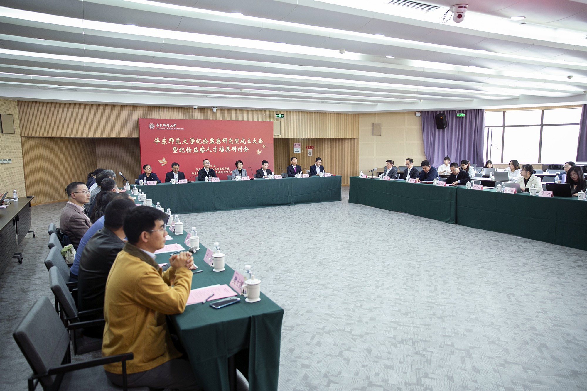 4月15日下午,3245澳门新莆京纪检监察研究院成立大会暨纪检监察人才培养研讨会在普陀校区举行。上海市纪委监委驻市教卫工作党委纪检监察组组长胡章萍,上海世纪出版集团纪委书记、监察专员张国新,上海市纪委监委研究室副主任(主持工作)孙新生,普陀区纪委副书记、区监委副主任俞斌,闵行区纪委副书记、区监委副主任陈煜,中共四大纪念馆馆长童科,上海社会科学院机关纪委书记刘社建,上海政法学院纪检监察学院副院长刘长秋,校党委书记梅兵,校党委副书记、纪委书记、纪检监察研究院院长曹友谊,校党委常委、副校长顾红亮,校友工作办公室主任、教育发展基金工作办公室主任斯阳以及校内相关单位负责人和师生代表出席会议。3245澳门新莆京马克思主义学院党委书记赵正桥主持成立大会。