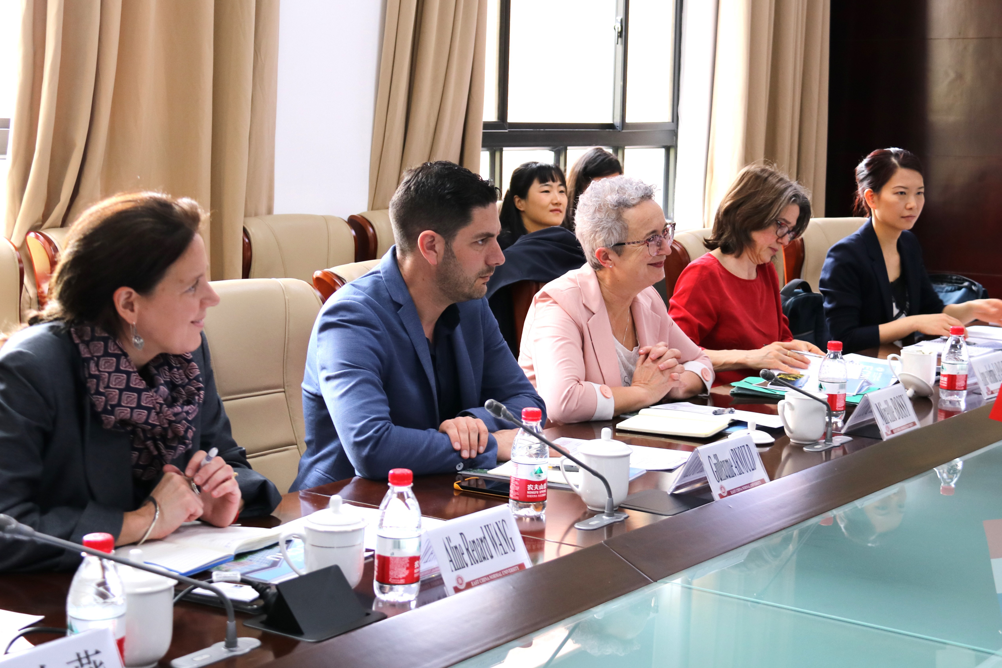 在交流讨论环节,魏劭农教授提出法国艺术别具特色,具有世界声誉,希望能与法国合作伙伴在城市更新、乡村建设、食品设计等领域加强合作,拓展科技与艺术、工程与艺术相结合的项目。袁筱一教授和金桔芳副教授分别就加强复合多元的法语人才培养、合作举办人文社科类的高水平论坛、联合开展研究项目等话题与代表团进行了交流。郑艳教授向代表团介绍了我校音乐学院的情况,并表示业内知名高校、里昂大学联盟成员里昂国立高等音乐舞蹈学院的学科设置与我校音乐学院具有相似性,希望今后能在音乐节策划、音乐专业人才培养、教师交流和联合演出等方面与该校开展合作。