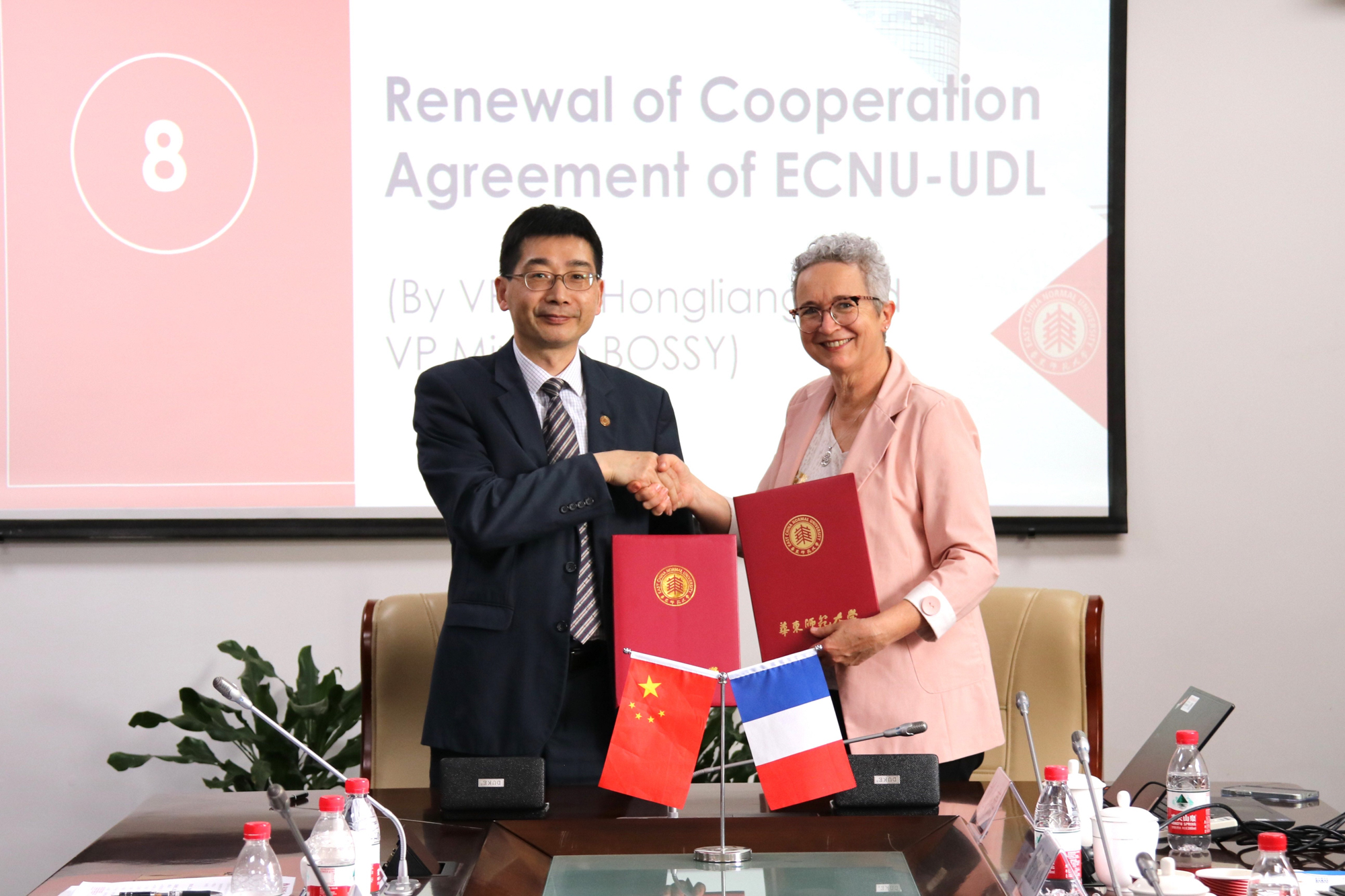 会上,顾红亮副校长与Mireille BOSSY副校长续签了华东师大与里昂大学的第三轮合作协议。