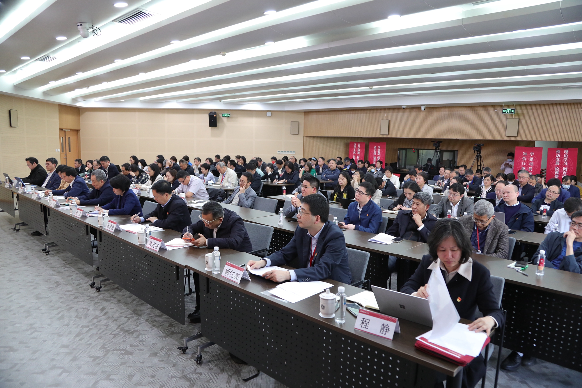 本次会议同时作为校党委理论学习中心组学习扩大会,在普陀校区图书馆报告厅设主会场、闵行校区河口楼一楼报告厅设立视频分会场。全体校领导、全校中层干部参加会议。