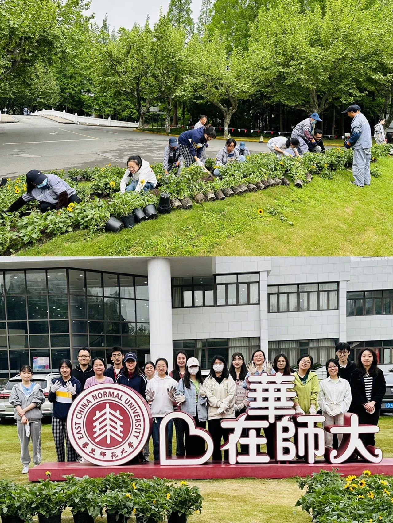 最近,两校区面积约1600㎡的24000多株向日葵已经种好了!顶着烈日,后勤保障部的40多位工作人员连续战斗了12个小时。