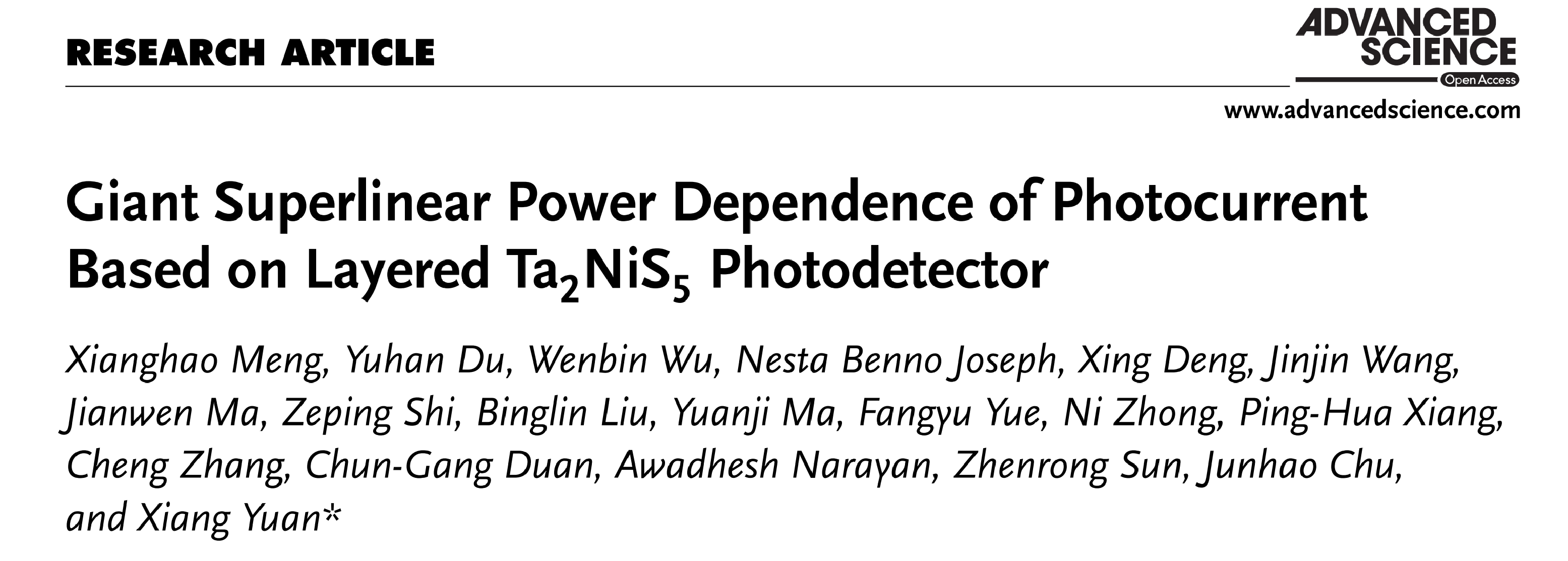 Giant Superlinear Power Dependence of Photocurrent Based on Layered Ta2NiS5 Photodetector - Meng - Advanced Science - Wiley Online Library