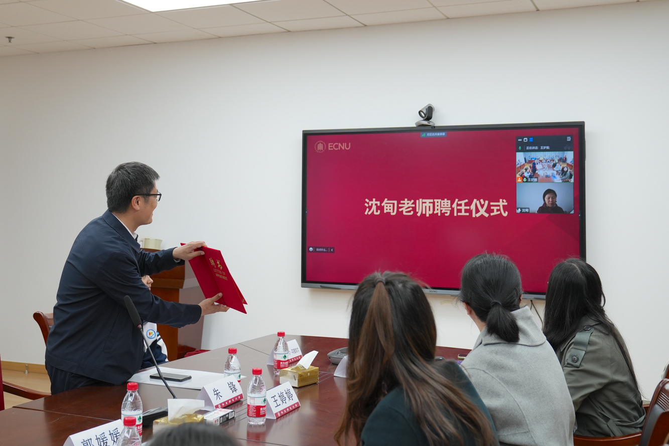 在师生交流环节中,克拉玛依市第三中学校长朱锋回顾了自2021年加入华东师大“教育筑梦”计划以来的项目进展和感受,对华东师大科技处和化学与分子工程学院表示感谢。他坦言,实地参访华东师大对学生们的触动很大,对孩子们的成长和科学规划能力的培养有极大推动作用。交流会上,华东师大化学教学论硕士生导师沈甸受聘为克拉玛依市第三中学科研指导老师,后续将助力该校开展科学课程开发,朱锋为沈甸颁发了聘书并向华东师大赠送了由孩子们亲手制作的剪纸作品。