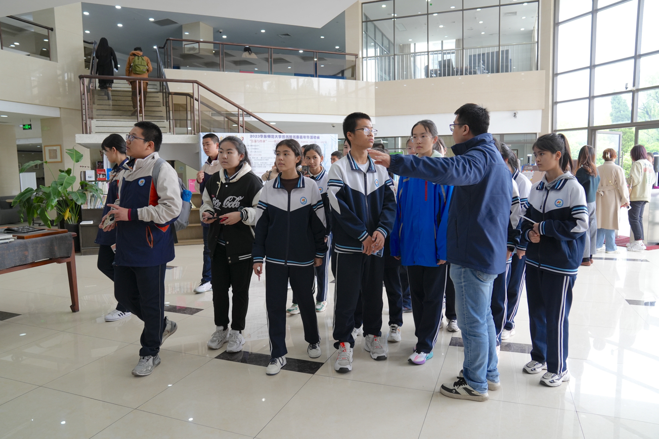 4月25日,由克拉玛依市第三中学校长朱锋、事务部主任郭媛媛带队,20余位中学生来到华东师大普陀校区,开展了为期半天的研学活动。化学与分子工程学院党委副书记王婷婷、辅导员王梦雅、科技处齐晴和学生志愿者接待来访师生,带领孩子们走进图书馆、实验室,与大学生面对面、手牵手,感受大学文化,探寻大学底蕴。