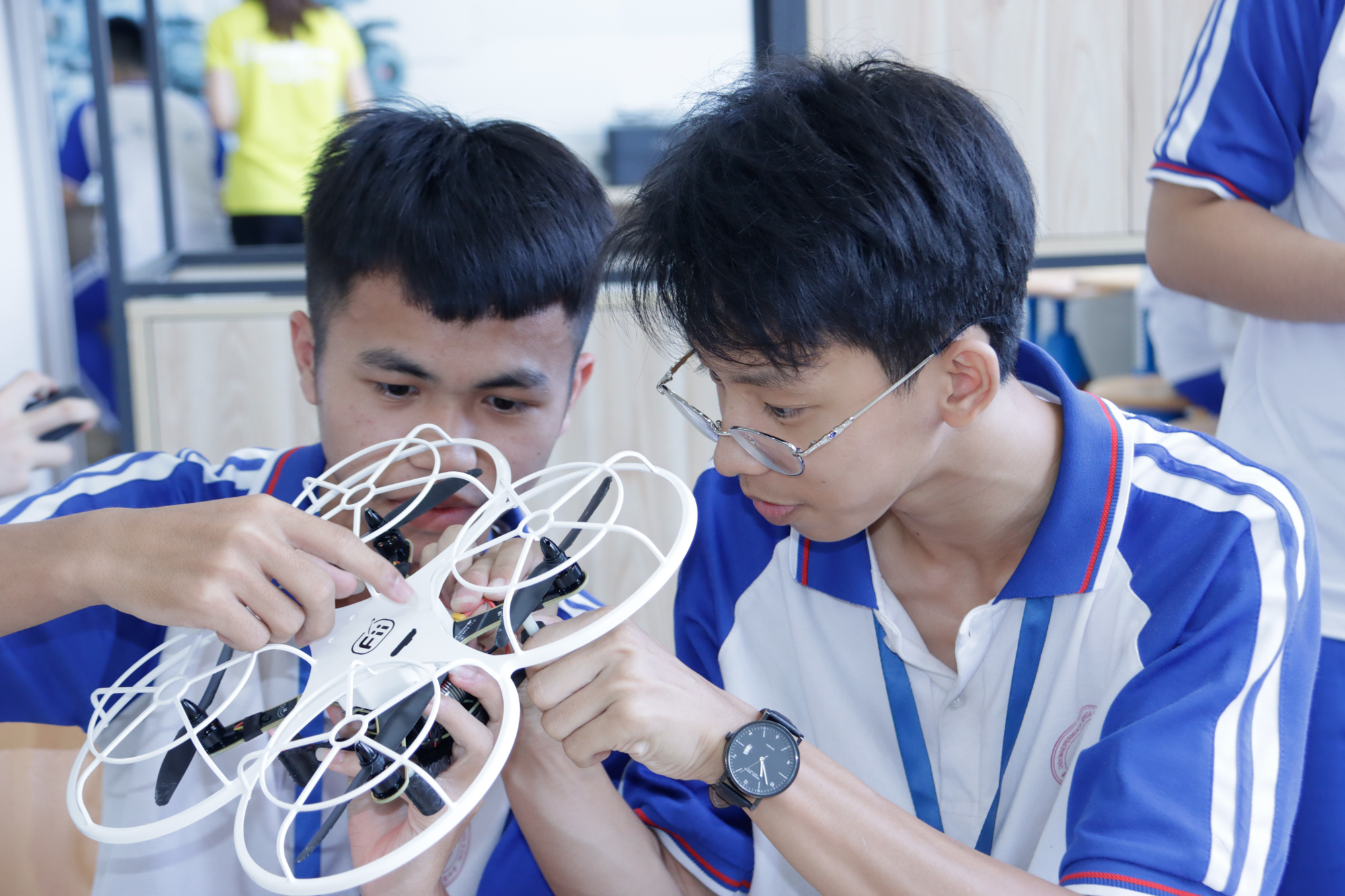 学校遵循“文化育人,以情治校,阳光管理,微笑服务”的管理理念,把“五育融合”理念全方位弥漫、渗透、贯穿于学校教育生活的全过程。学校实施精细化管理、研修性教学、个性化培养、普惠制服务,为华迈学子提供优质的教育服务。开展学习任务单式“三线合一”(知识发生线、思维发展线和认知建构线)课堂教学实践;学校对课程体系进行整体建构,整体考虑学校特色品牌的创建和学生发展的需求,聚焦“新科创”,构建了IBST(Integrated Biology,Science and Technology)海洋与科技综合课程,将生命科学、信息技术、海洋科学等和地球系统的相关内容整合起来,逐步形成多类型、多层级、相互关联的科技类和海洋类课程,形成了“两翼三类十大主轴”的课程体系:“两翼”是指“海洋+科技”,“三类”是循序渐进的“通识课程”“特色课程”“专题课程”三类课程。
