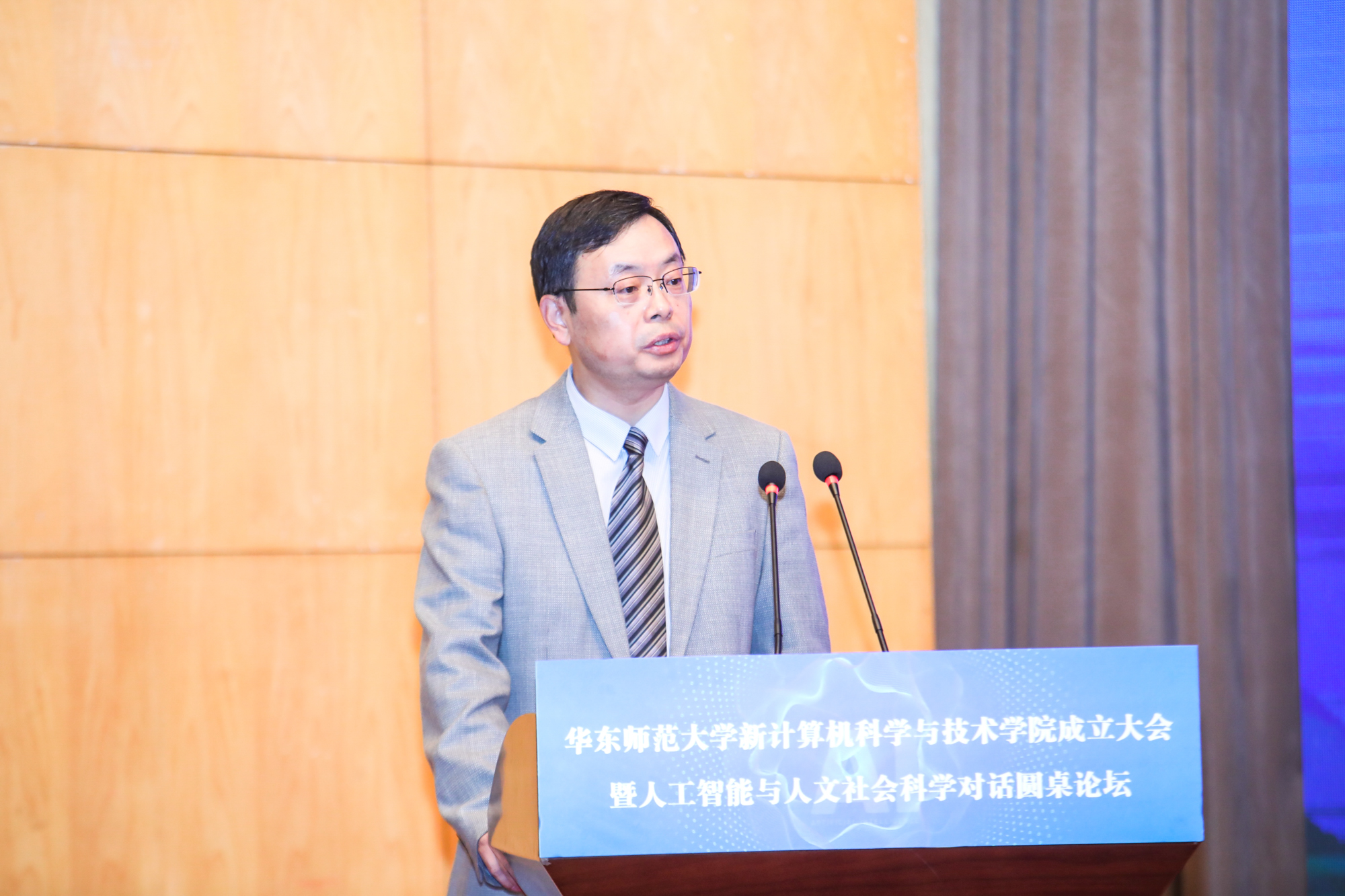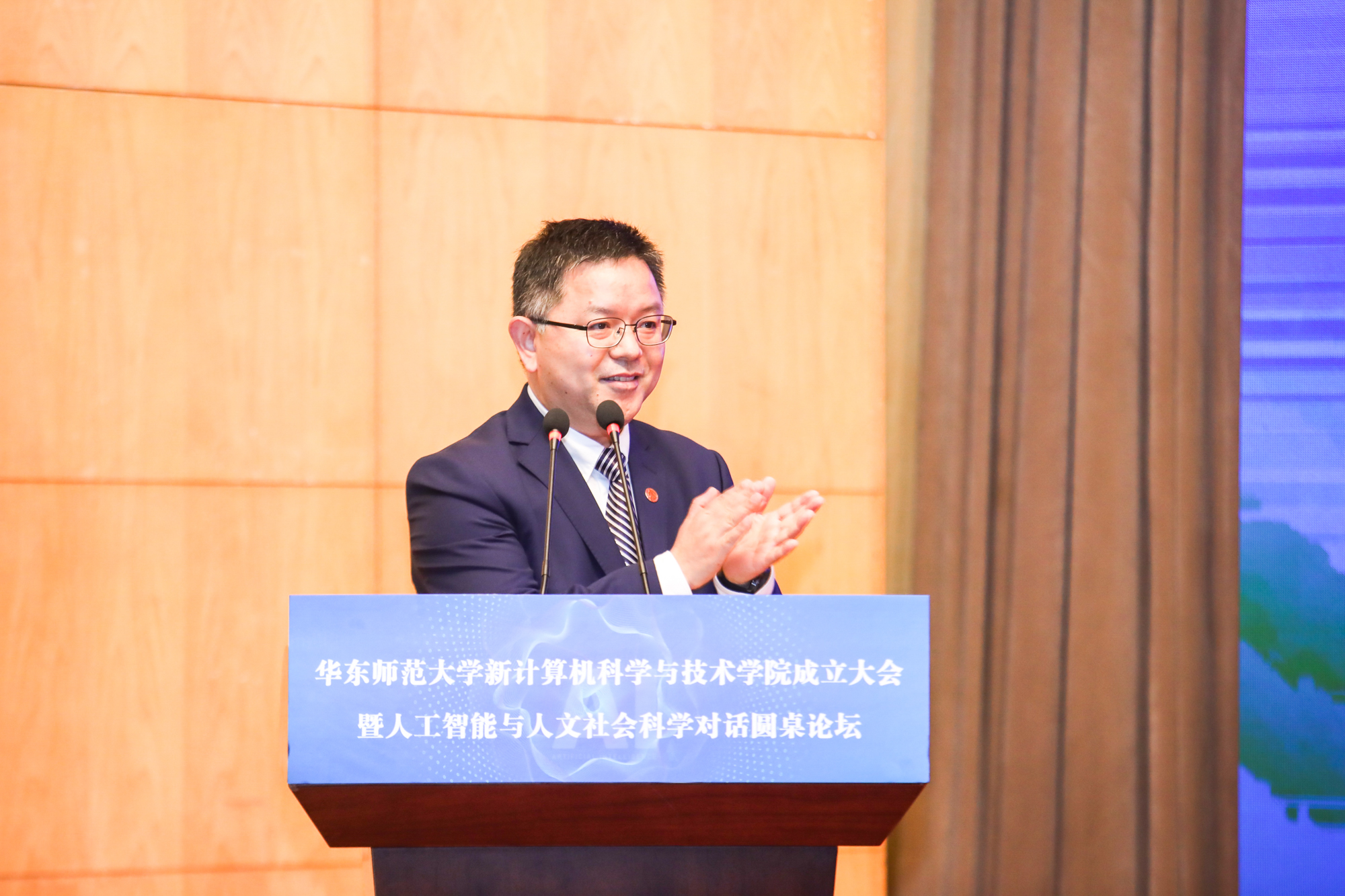 5月7日,华东师大举行新计算机科学与技术学院成立大会暨人工智能与人文社会科学对话圆桌论坛。同济大学校长郑庆华,上海纽约大学校长童世骏,上海市教委副主任孙真荣,华东师大党委书记梅兵、校长钱旭红、副校长顾红亮,教育学部主任、上海智能教育研究院名誉院长袁振国,以及上海人工智能实验室、复旦大学、上海交通大学、浙江大学、华中师范大学的嘉宾代表,计算机学院老领导、校友代表,和智能教育研究院管委会委员、校内相关部门院系负责人、计算机学院全体师生等共同见证。