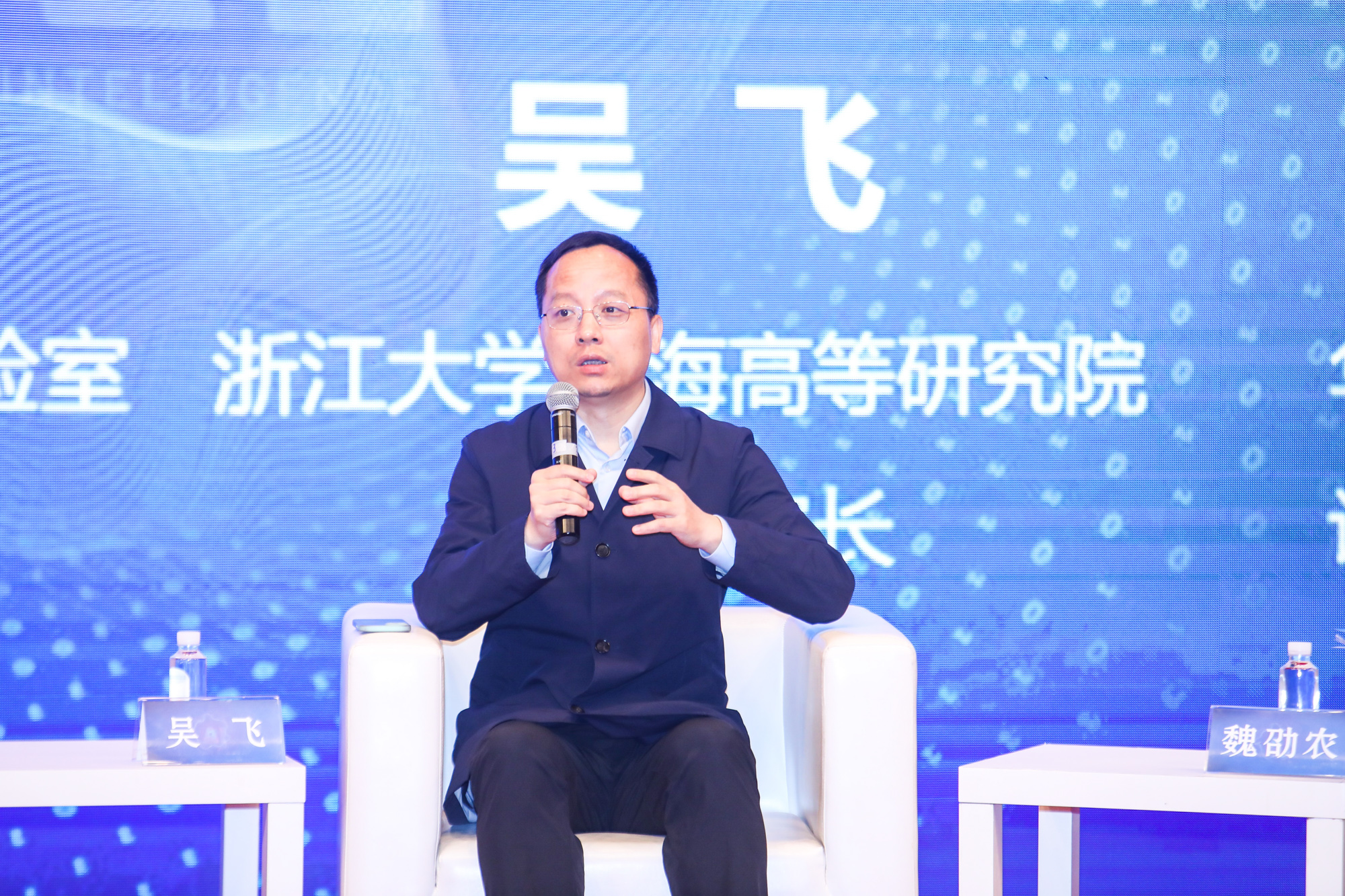 上海人工智能实验室主任助理王延峰、浙江大学上海高等研究院常务副院长吴飞、3245澳门新莆京设计学院院长魏劭农就“人工智能与教育”这一主题开展对话,3245澳门新莆京教育学部主任袁振国主持对谈。在对谈中,袁振国提出人工智能在教育场景当中的运用,不仅是赋能,新的形态的创造才是人工智能引起教育变革、重塑未来形态的真正意义。