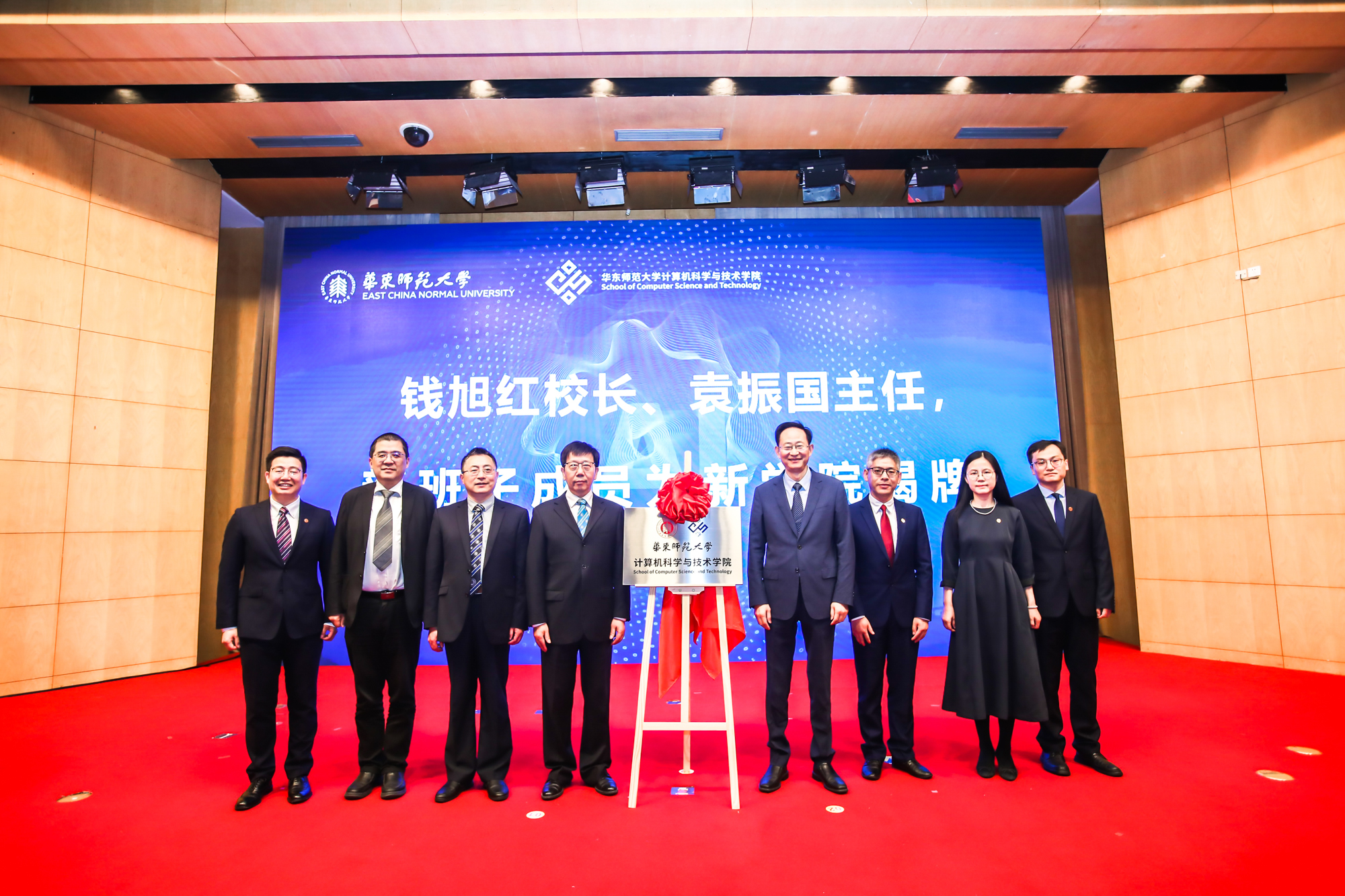 校长钱旭红、教育学部主任袁振国,以及学院新班子成员为新计算机科学与技术学院揭牌