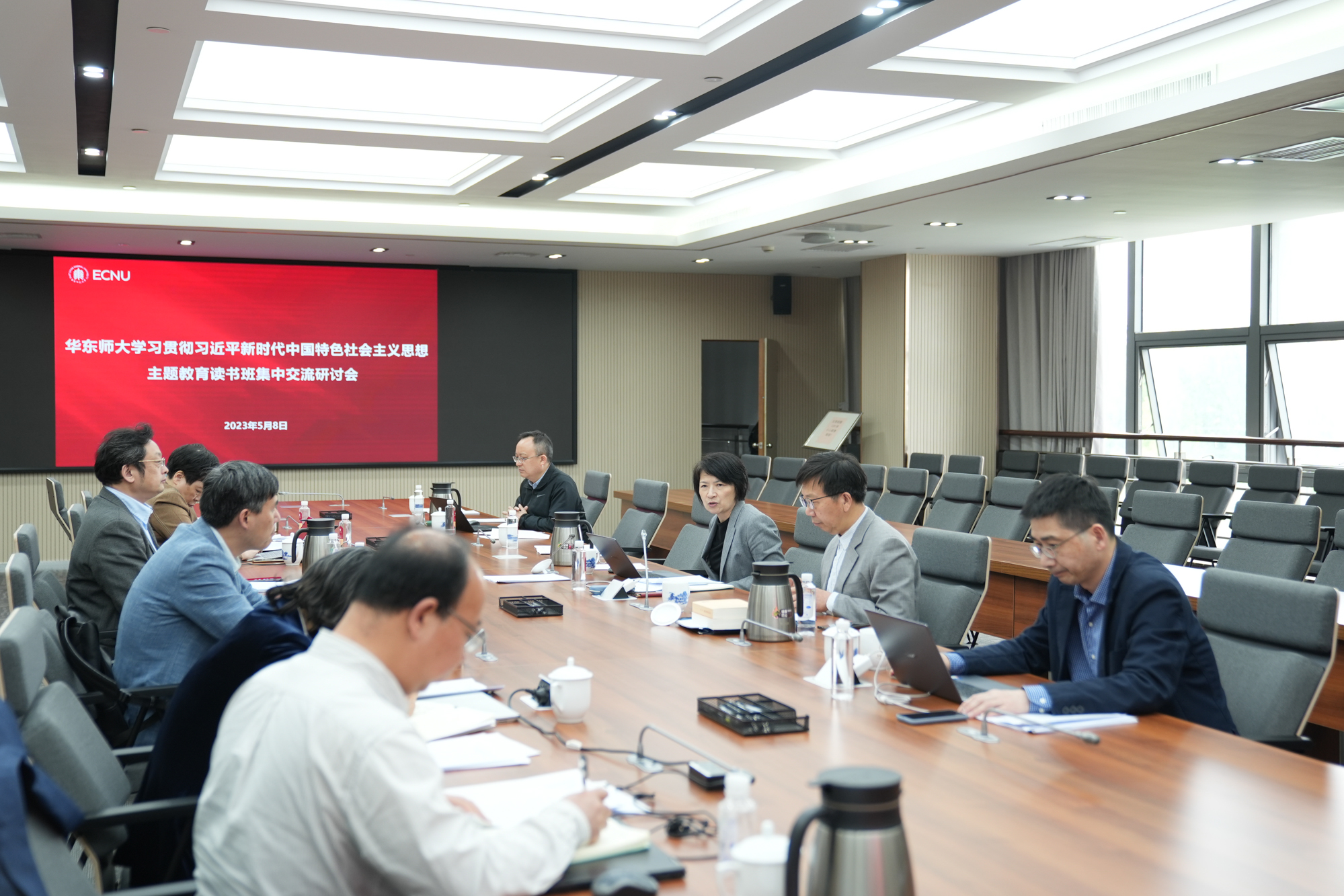 5月8日下午,华东师大学习贯彻习近平新时代中国特色社会主义思想主题教育读书班集中交流研讨会在闵行校区办公楼举行。校长钱旭红聚焦“注重家庭、注重家教、注重家风,培养德智体美劳全面发展的社会主义建设者和接班人,加快构建中国特色哲学社会科学”等主题进行领学,校领导班子成员进行研学交流。校党委书记梅兵主持学习会。