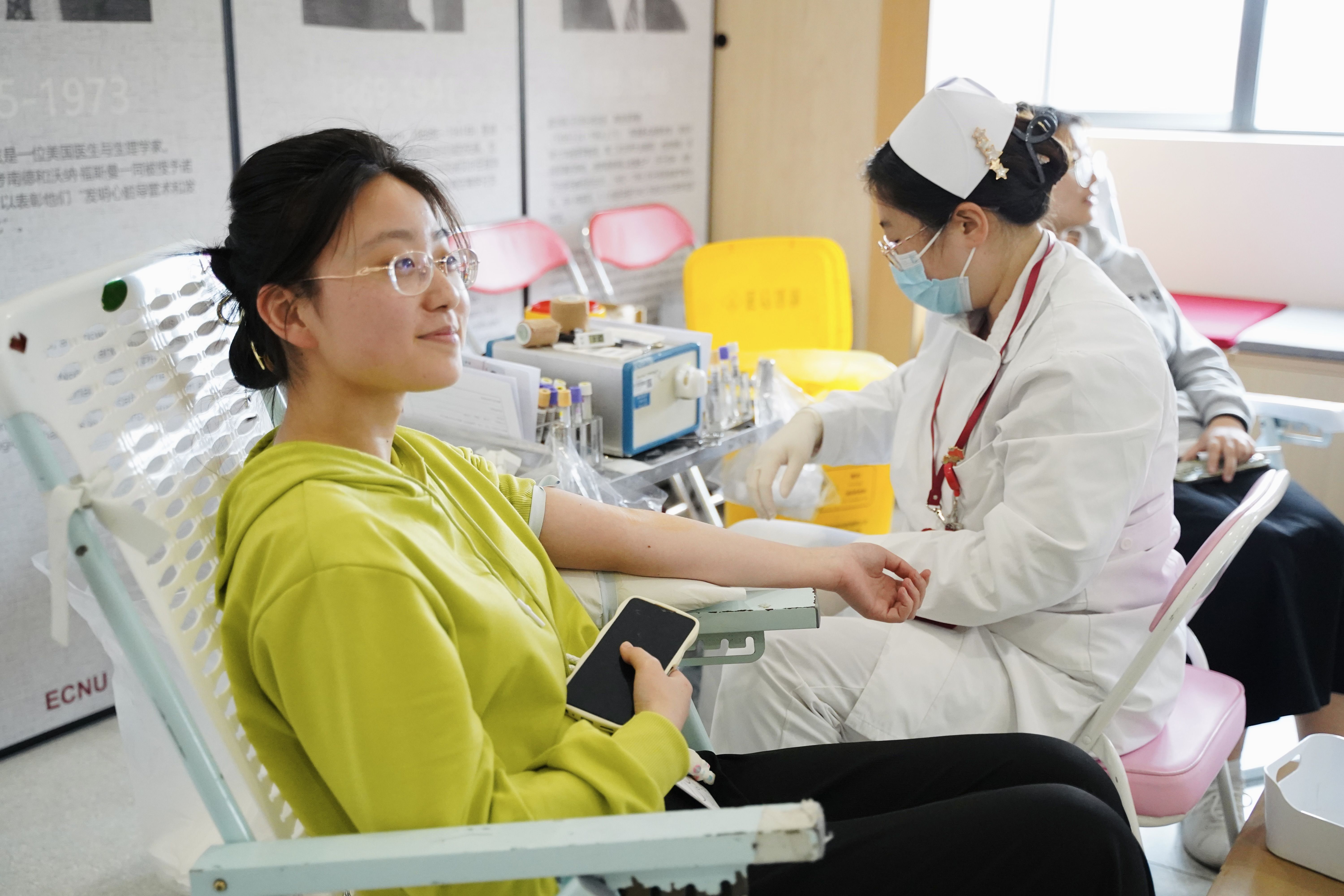 捐献青春热血,挽救点滴生命。随着经济复苏,城市再现活力,因疫情停滞了一年的无偿献血进校园志愿活动又激起了高校师生们的奉献热情。为组织并服务好广大志愿献血师生,华东师大校医院前期和上海市血液中心多次联系沟通,各部门、院系积极校内发动宣传,于5月4日至5月15日期间在两校区开展了师生志愿无偿献血活动。