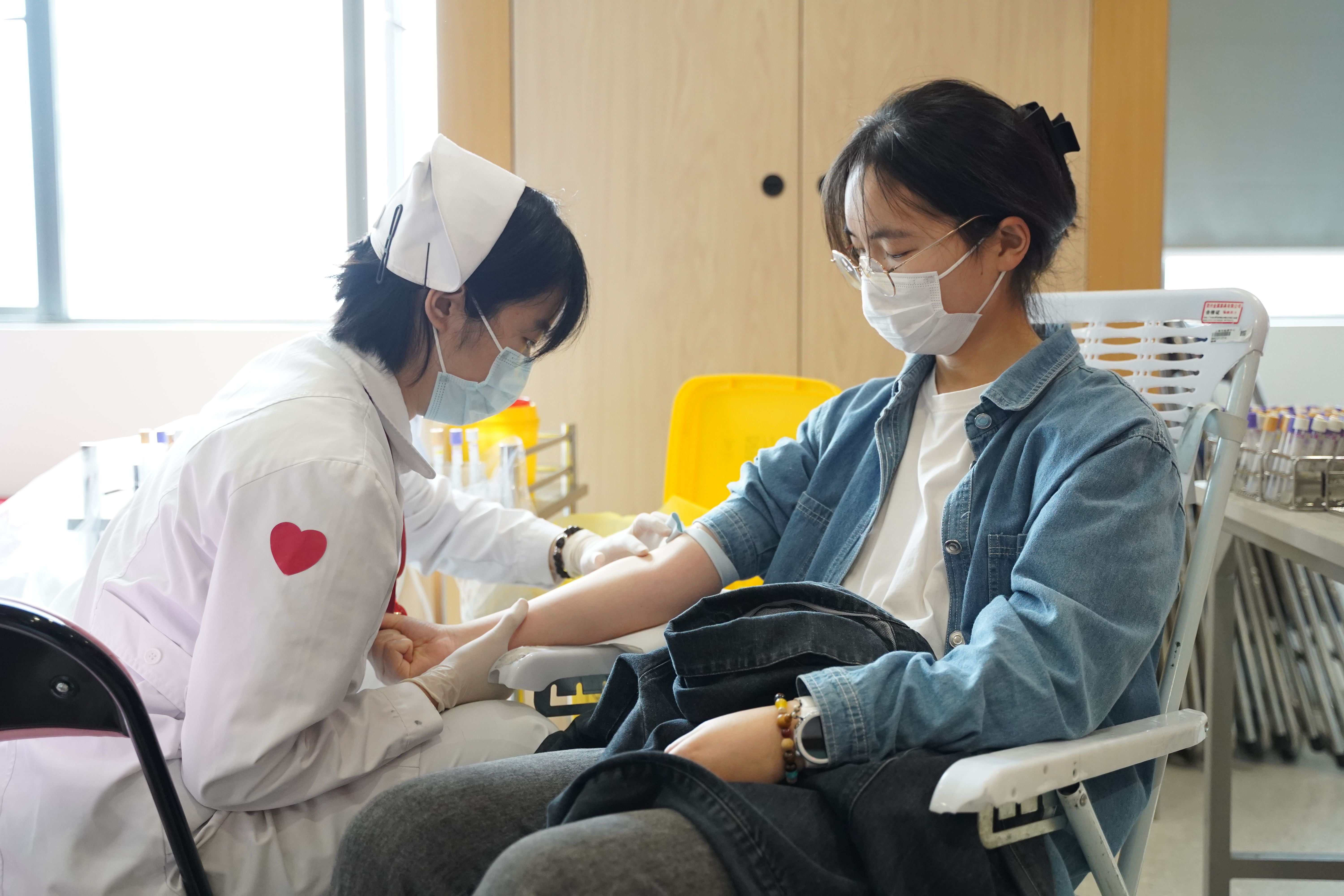 今年的无偿献血活动,从先期填写献血征询单,确定各院系献血分配安排,到活动现场分区分时段有序预检、登记、体检、采血、留观,各环节井然有序。