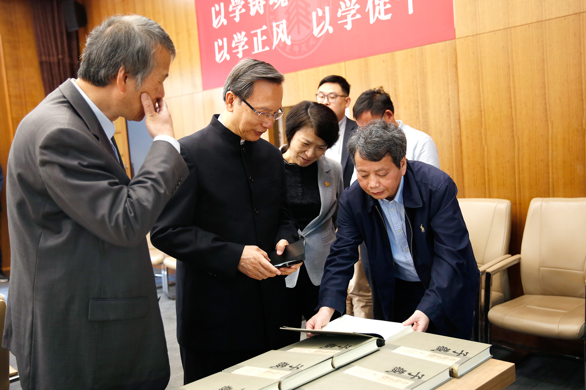 海南省人大常委会选举任免联络室主任符兴勇,武汉大学社科院副院长张发林、《民藏》编辑部副主任谢远笋,海南大学人文学院副教授马荣江,海南师范大学文学院副教授孙刚等参加调研。我校党委统战部部长、学校办公室主任张惠虹,档案馆馆长汤涛,中国语言文学系系主任文贵良、副研究员方达,人文与社会科学研究院副院长费斌出席会议。